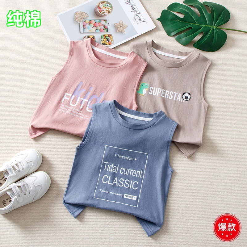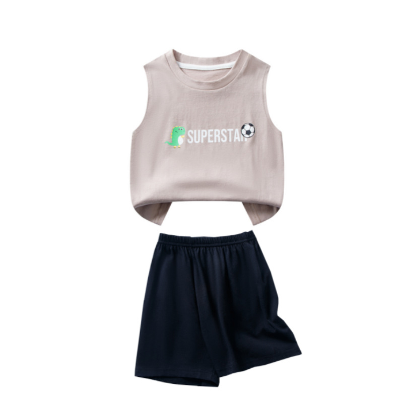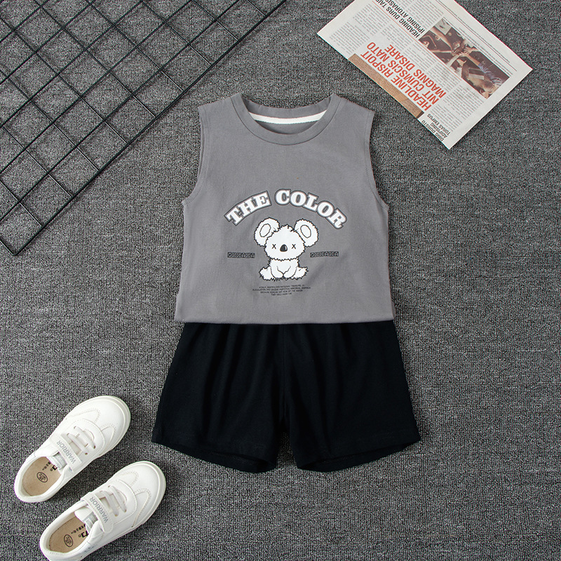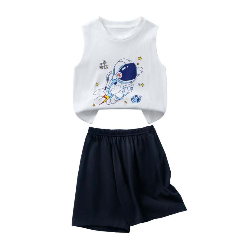 WO25 아동용 순면 조끼 세트 남아 여름 신상품 여아 유아복 홈웨어 세트