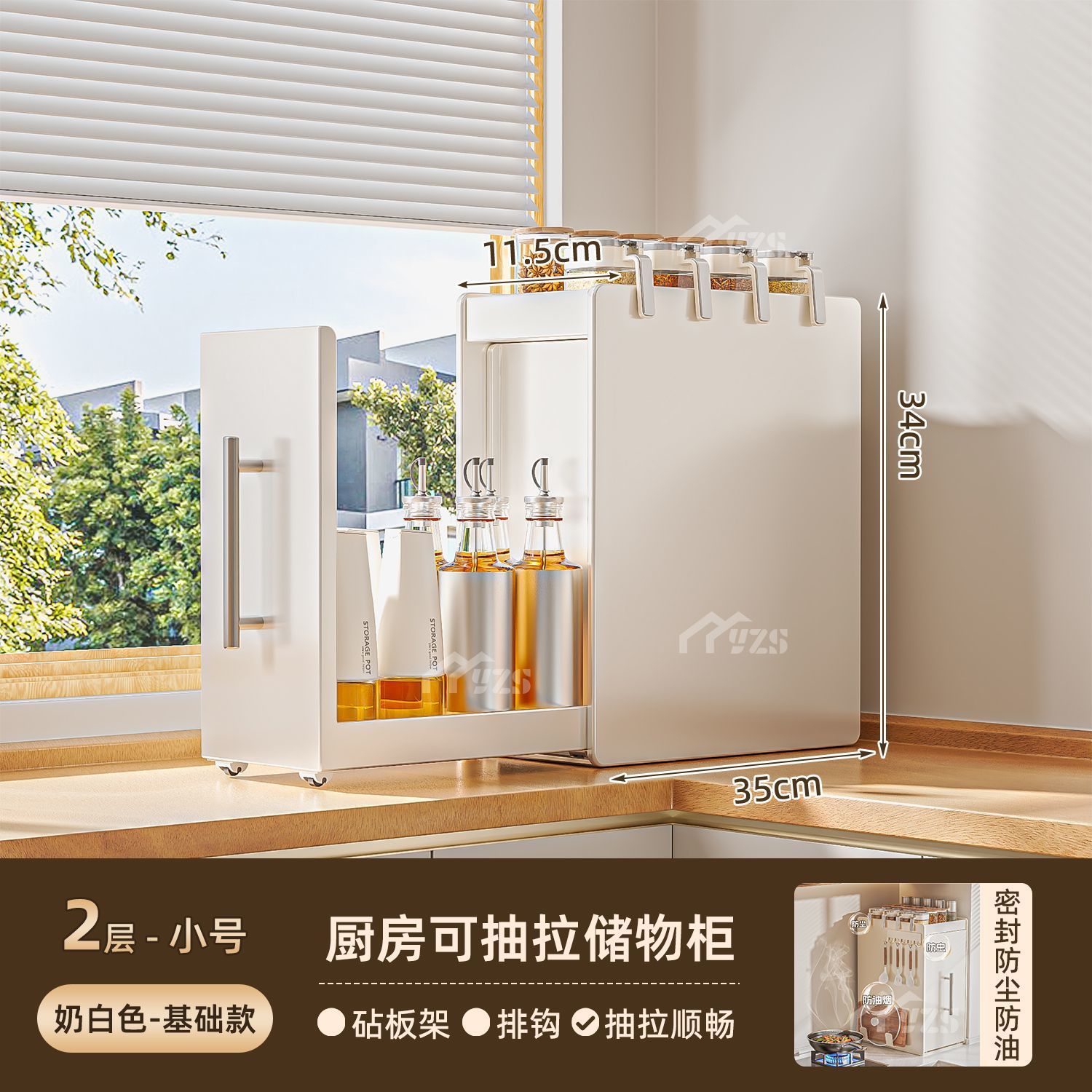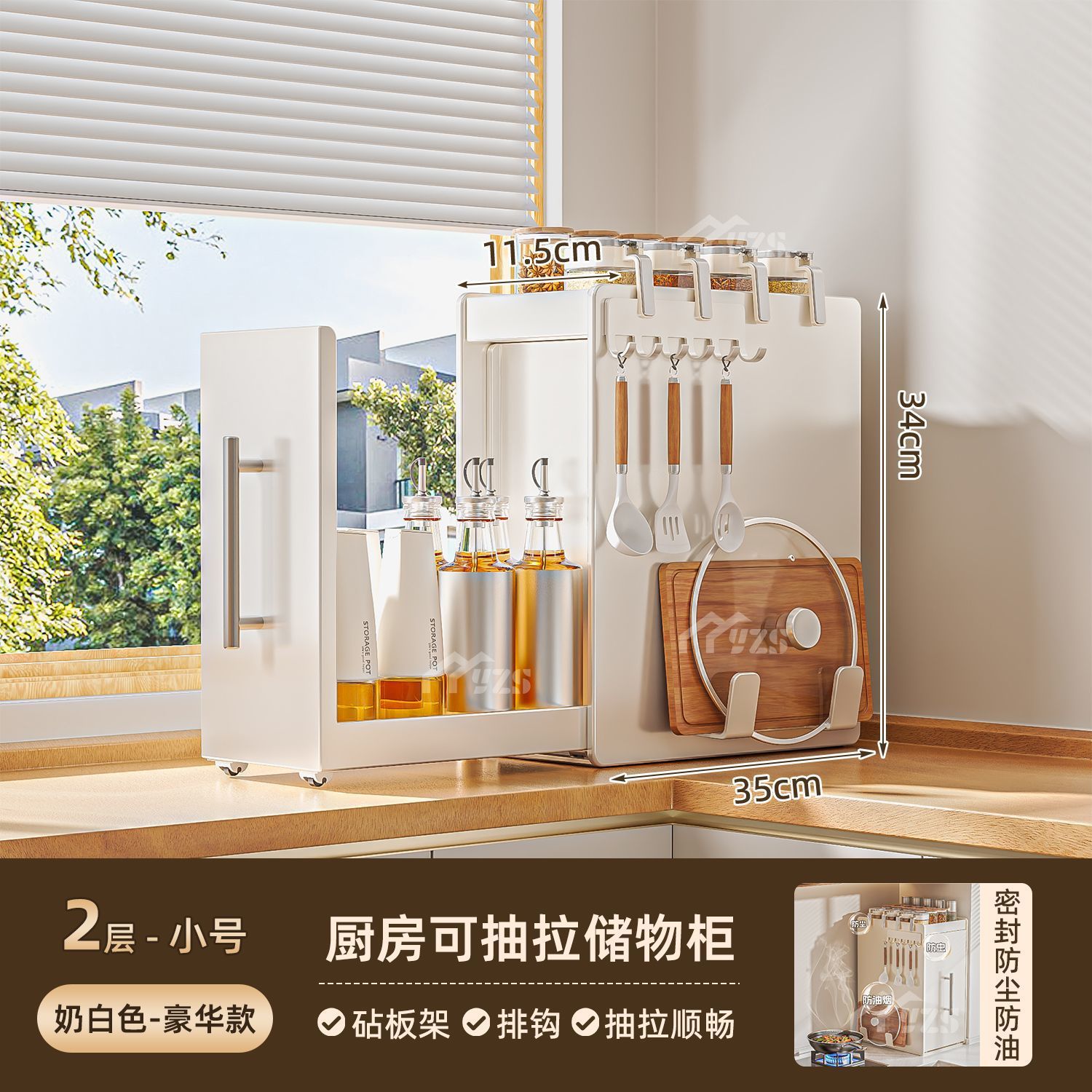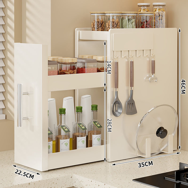 • 흰색 2단 소형 풀세트 슬라이딩 조미료 선반 + 걸이 + 도마 거치대