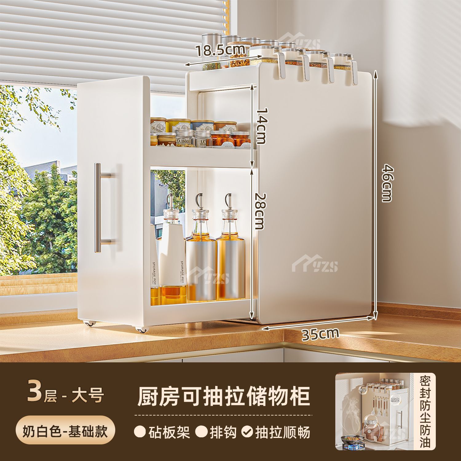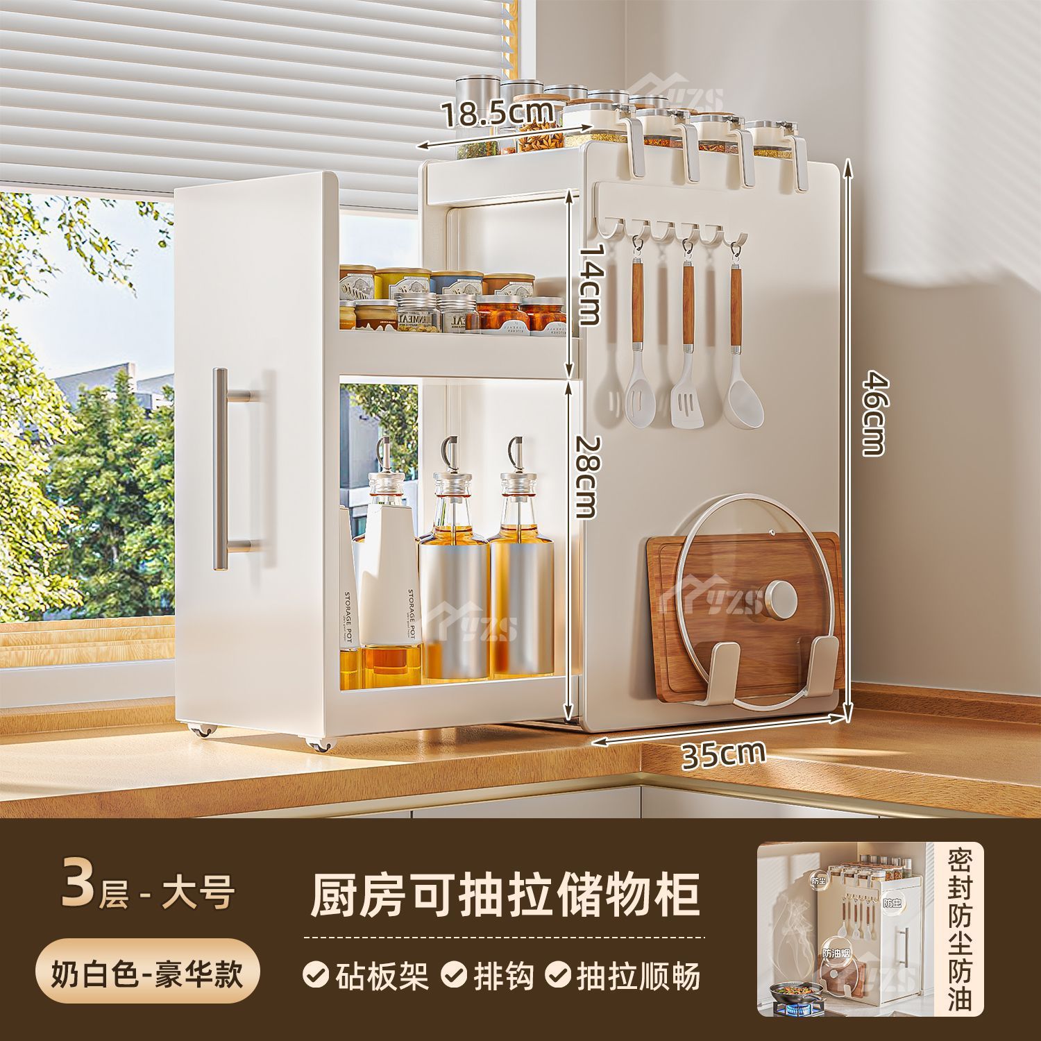 • 흰색 3단 대형 풀세트 슬라이딩 조미료 선반 + 걸이 + 도마 거치대