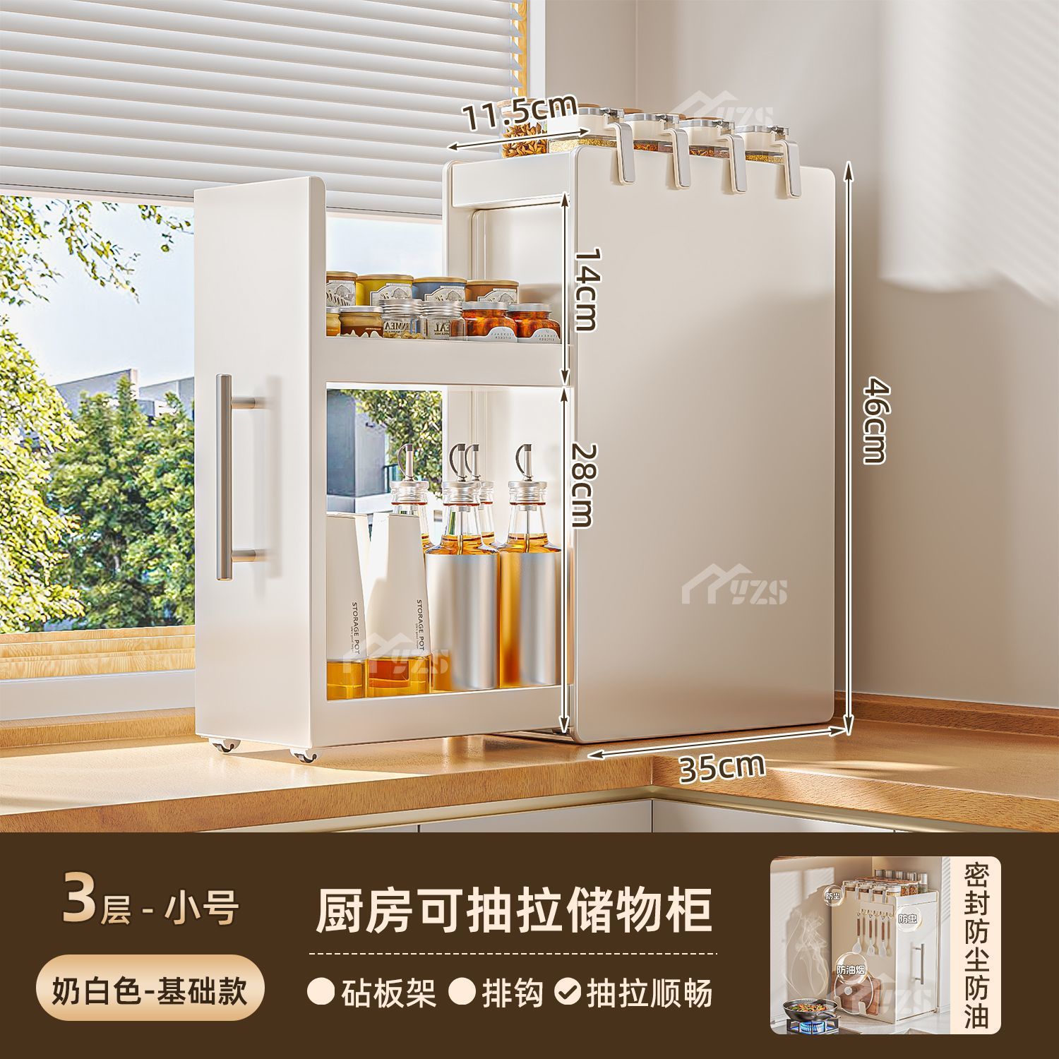 • 흰색 3단 소형 일반형 슬라이딩 조미료 선반