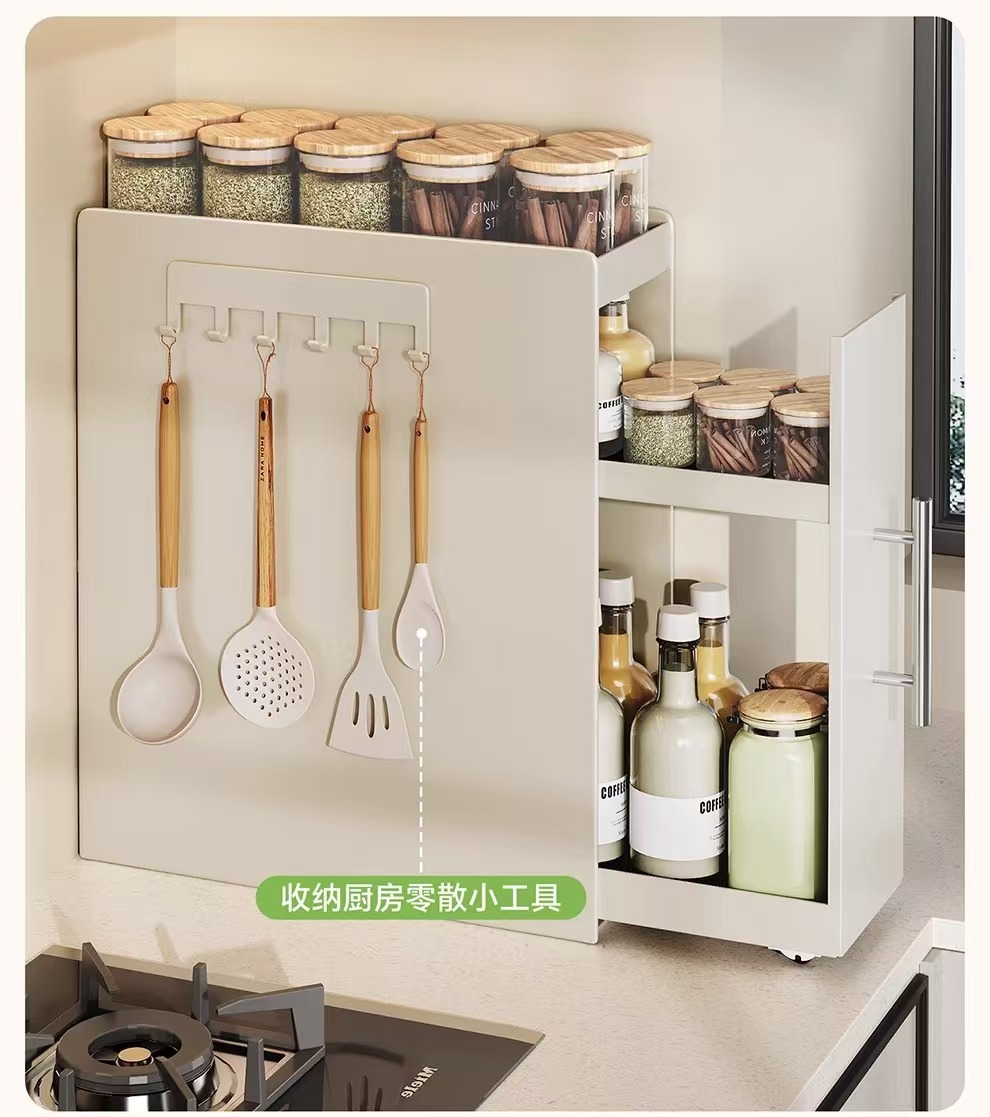 새로운 스타일의 풀아웃 조미료 보관함 다기능 다층 보관함 주방 조리대 용품 좁은 가장자리