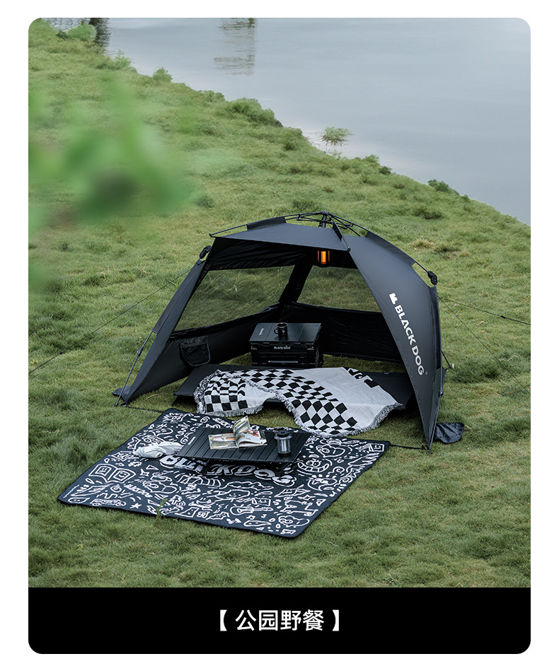 검은 개 야외 그림자 햇빛 자동 텐트 편리한 야외 캠핑 전망대 선 스크린