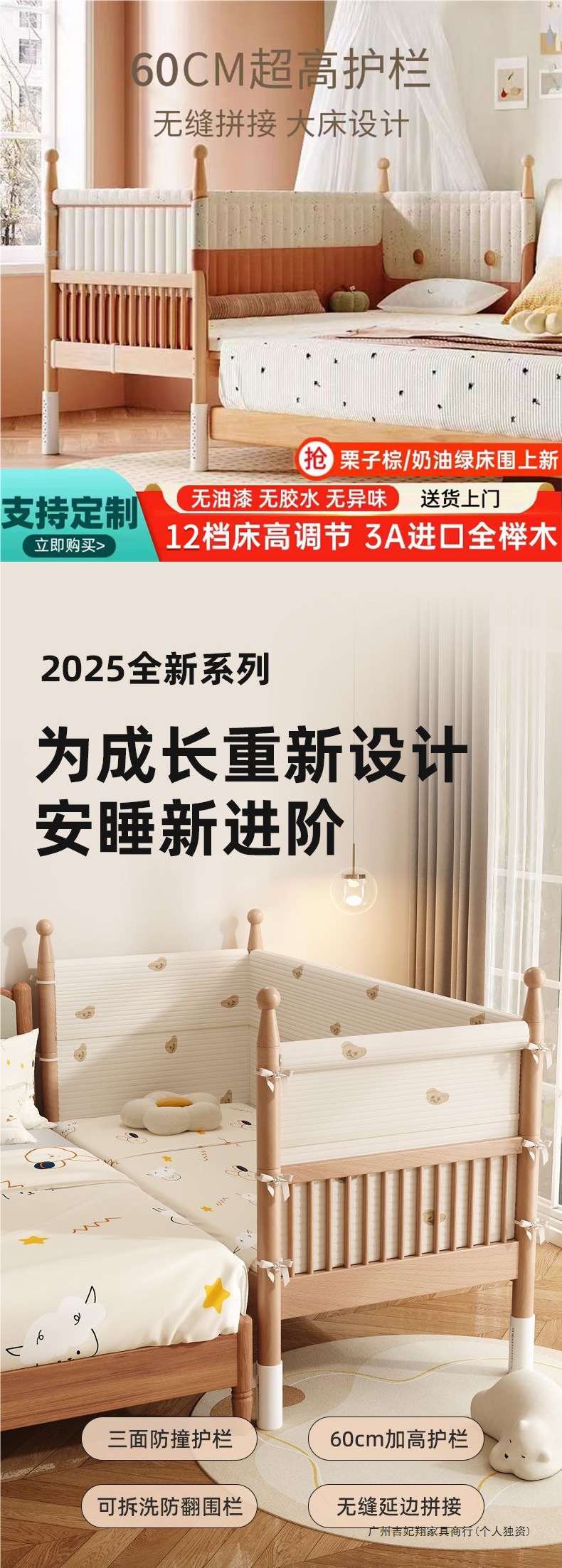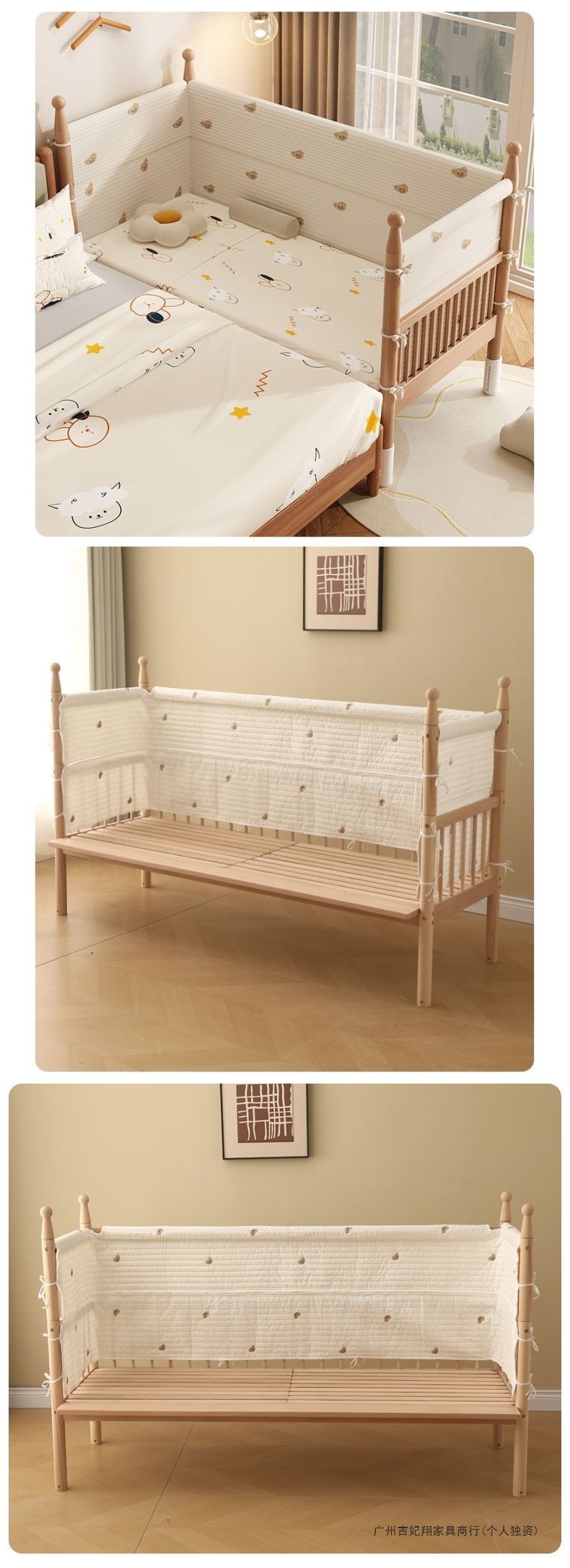 원목 너도밤나무 어린이 접합 침대, 유아용 접합 침대, 리프팅 가능한 가드레일, 확장형 침대 옆 침대, 유아용 싱글 침대