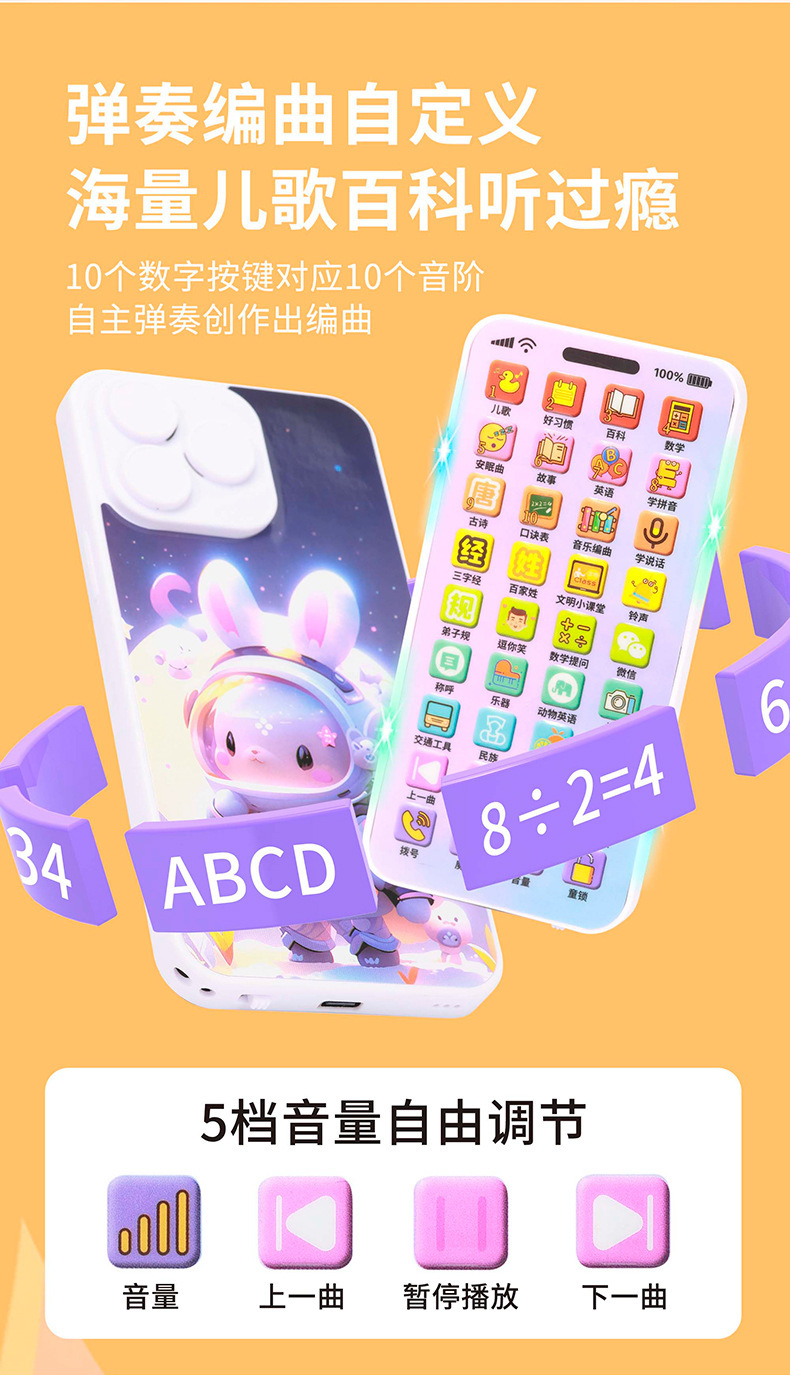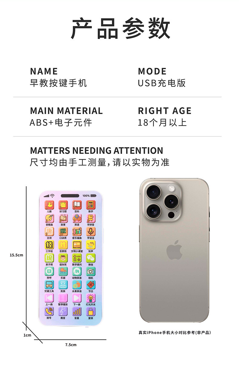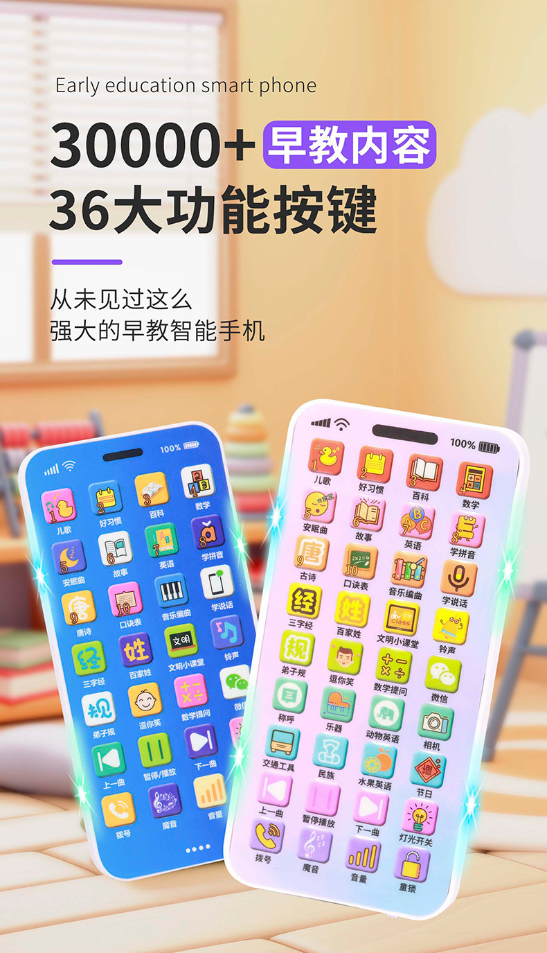 충전식 시뮬레이션 터치 스크린 휴대 전화 장난감 지능형 조기 교육 학습 기계 Tangshi 300 Pinyin 전화 이야기 기계