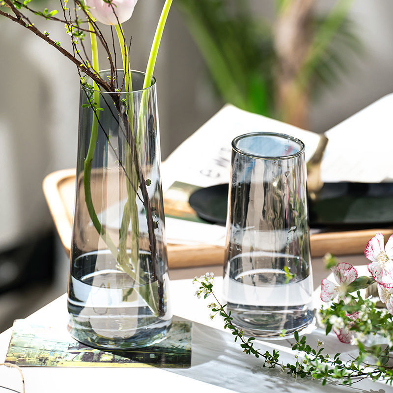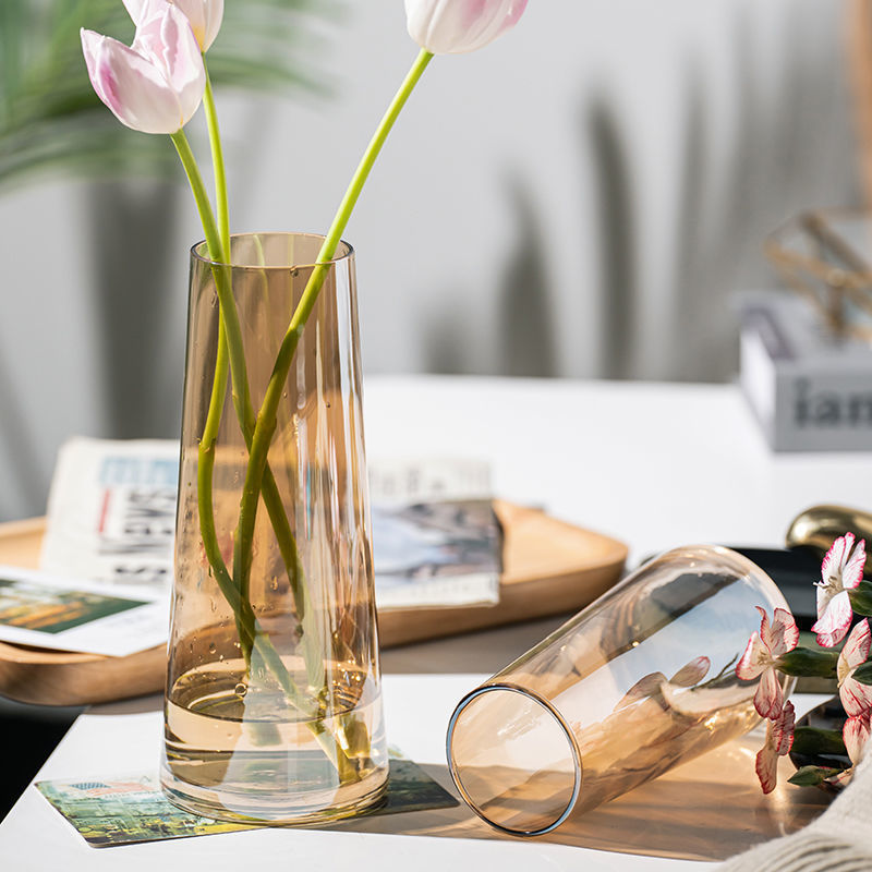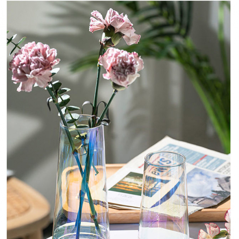 유리 꽃병, 원뿔형 인터넷 연예인 투명 물 장미 꽃, 말린 꽃, 꽃꽂이, 탁상 장식, 거실 장식품