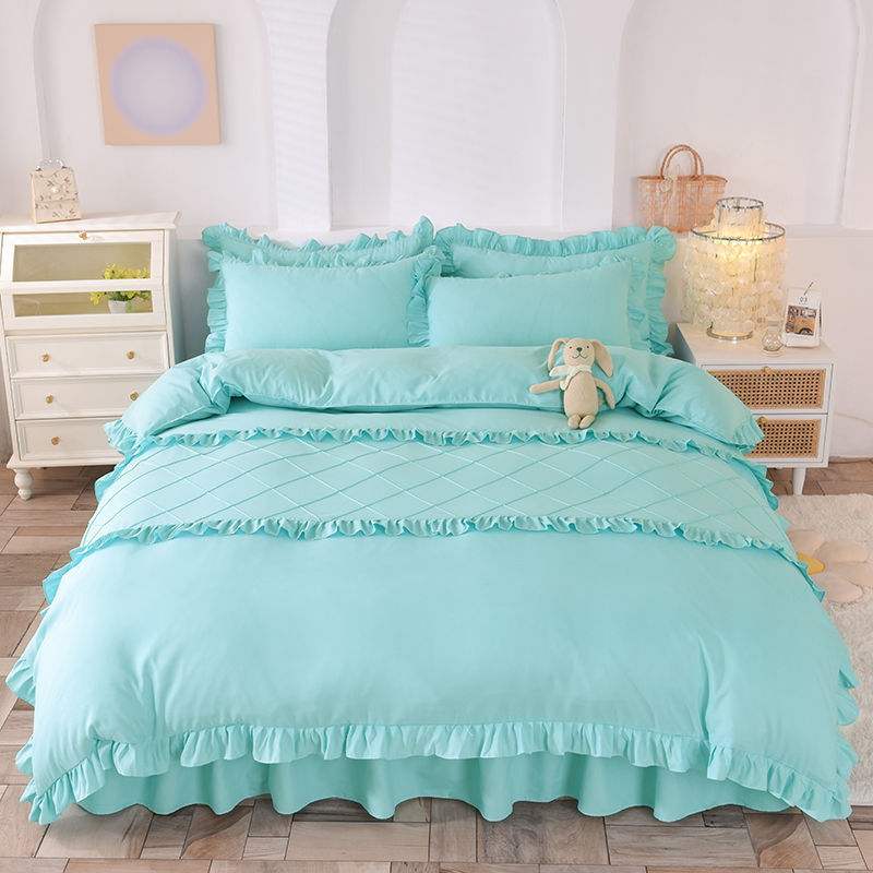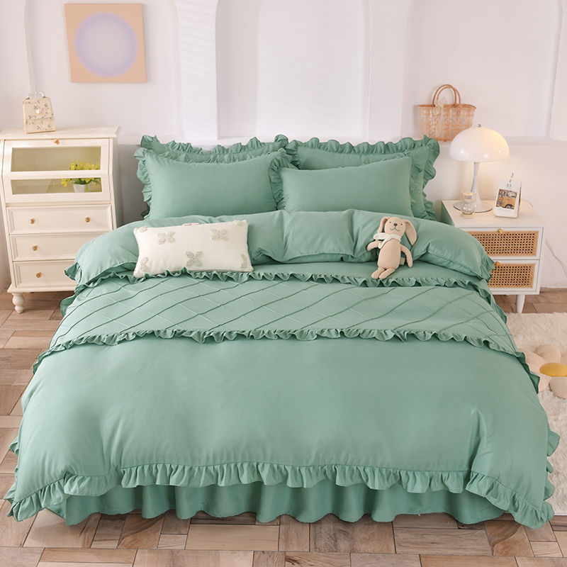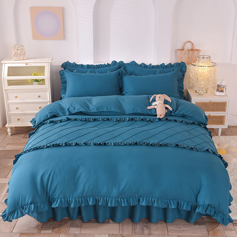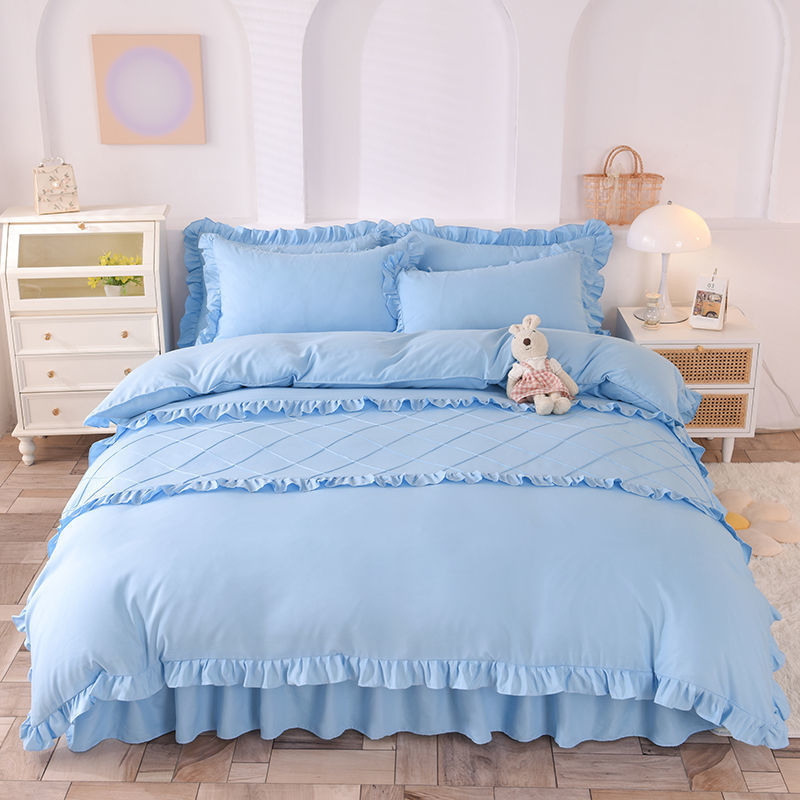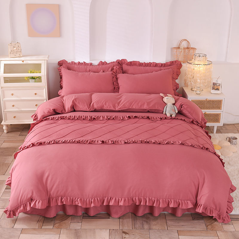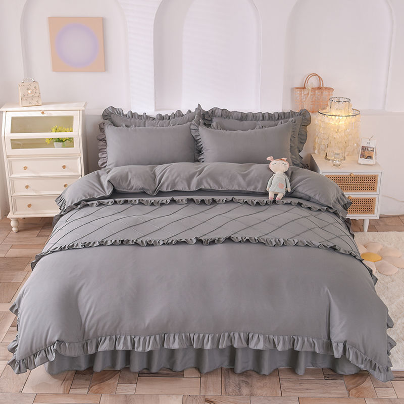 이불커버, 침대, 인터넷 연예인 침대 스커트 4종세트, 단색 한국판 피부친화적인 4종세트, 워싱면 이불커버, 침구스토어 가기