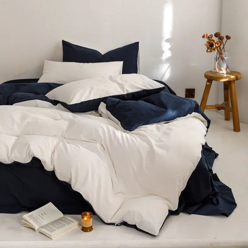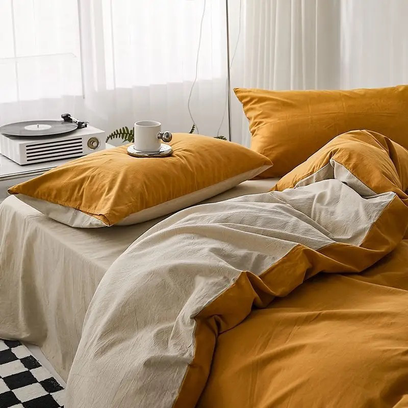 침대 시트, 이불 커버, 워싱 코튼 4피스 침대 시트, 학생 기숙사 100 순면, 약 B&B 침구