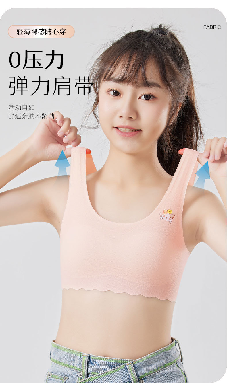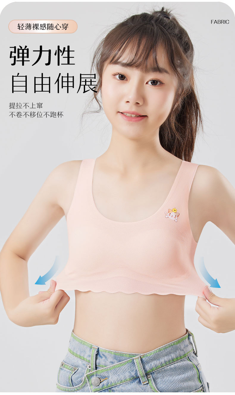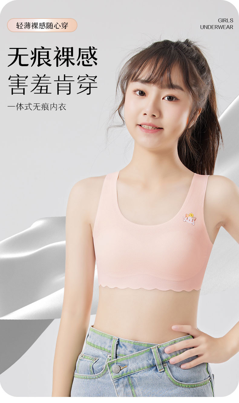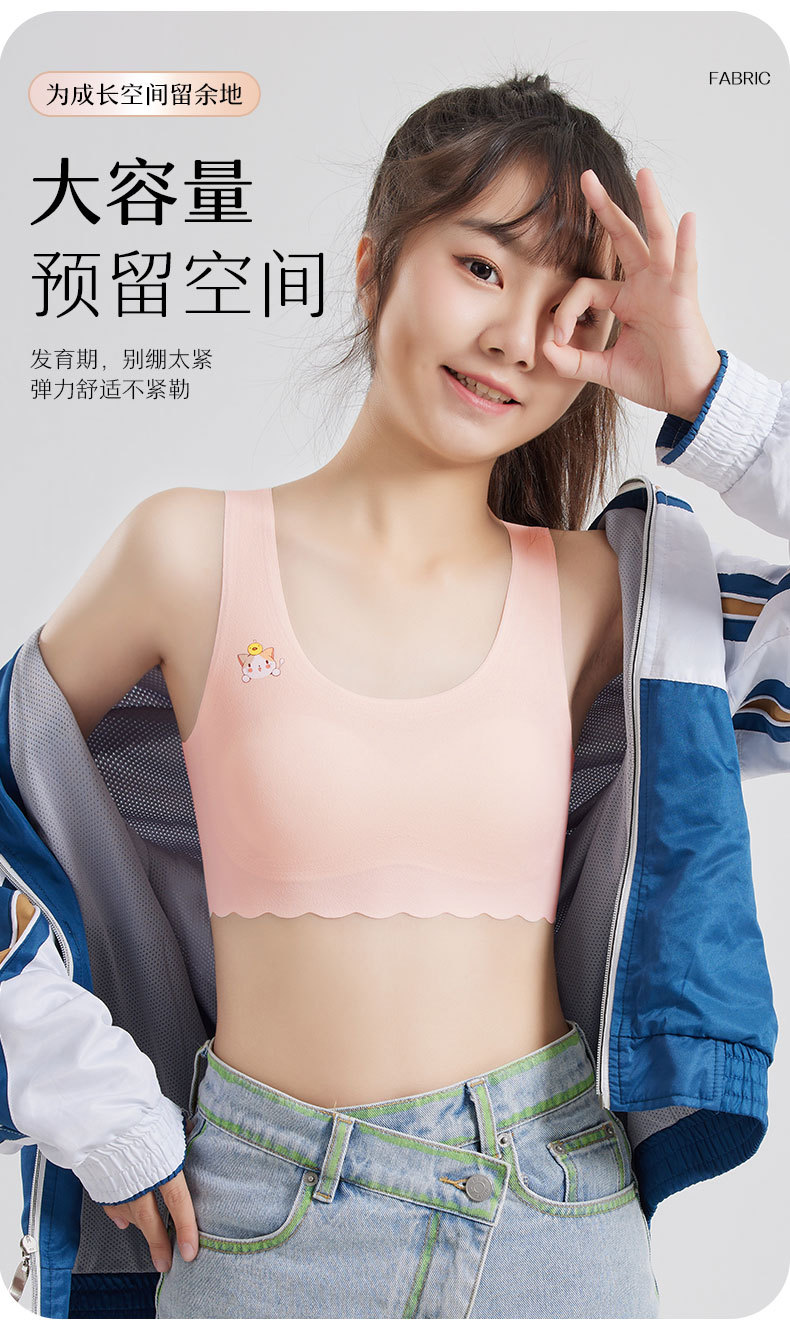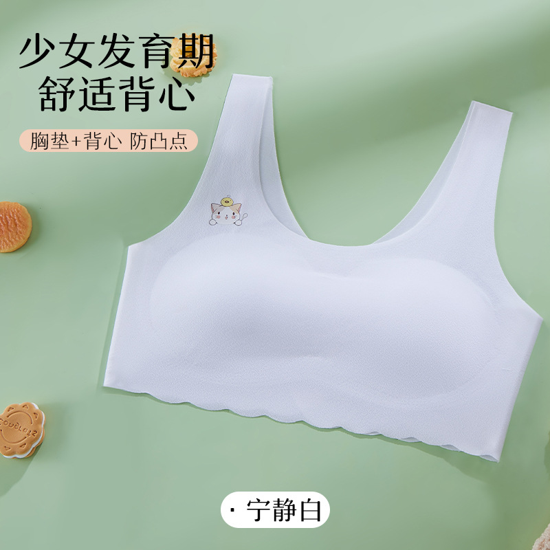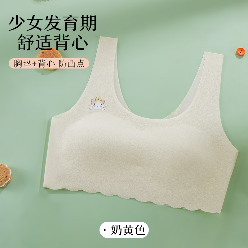 발달기 여아, 중학생, 고등학생, 아이스 실크 심리스 여아 조끼, 튜브탑, 스포츠 충격 방지 브라, 고정컵스토어 가기