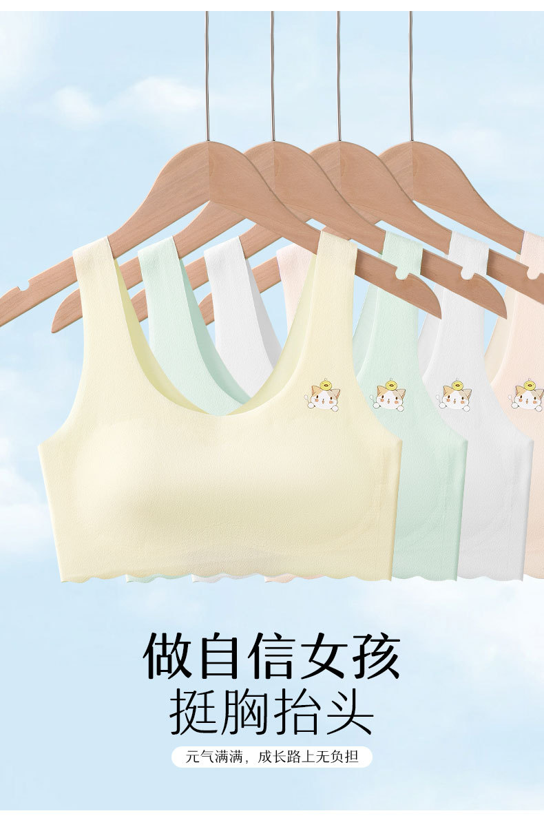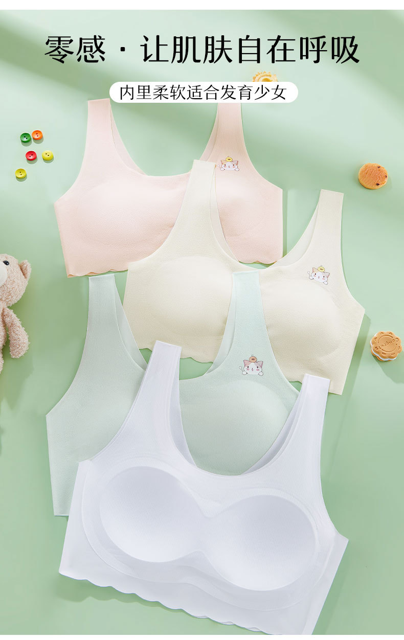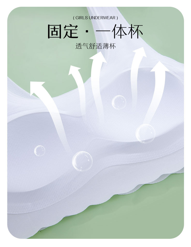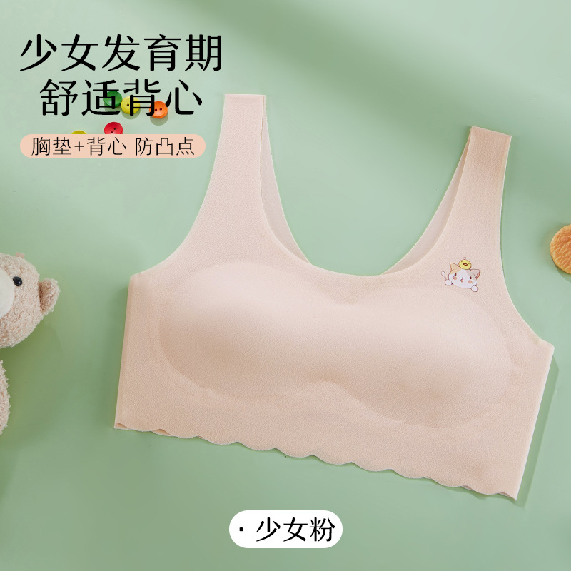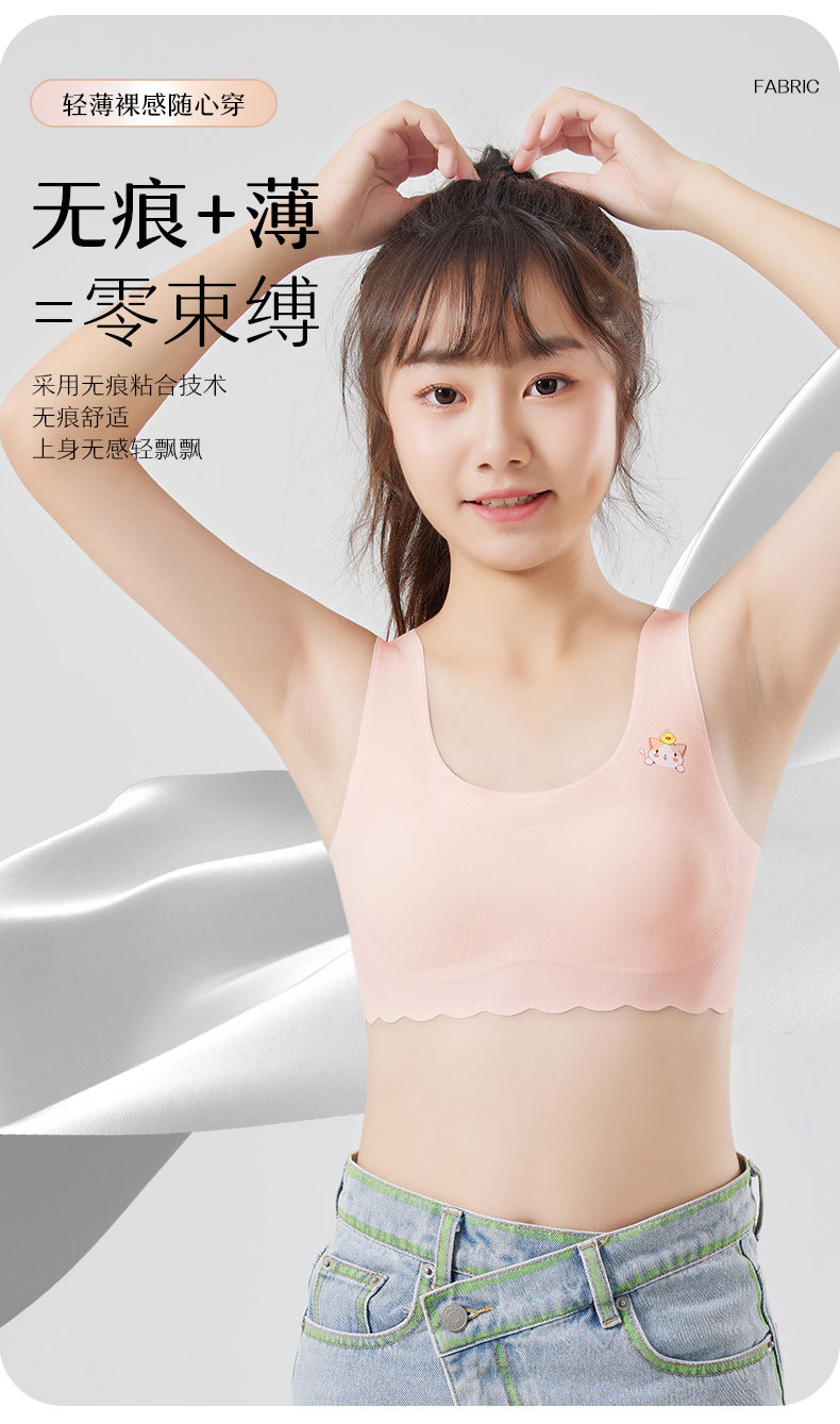 발달기 여아, 중학생, 고등학생, 아이스 실크 심리스 여아 조끼, 튜브탑, 스포츠 충격 방지 브라, 고정컵스토어 가기