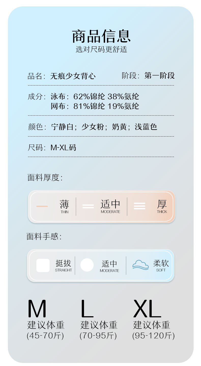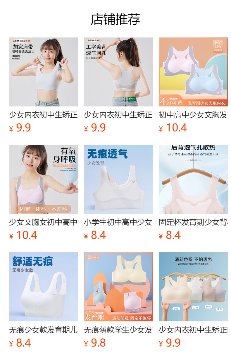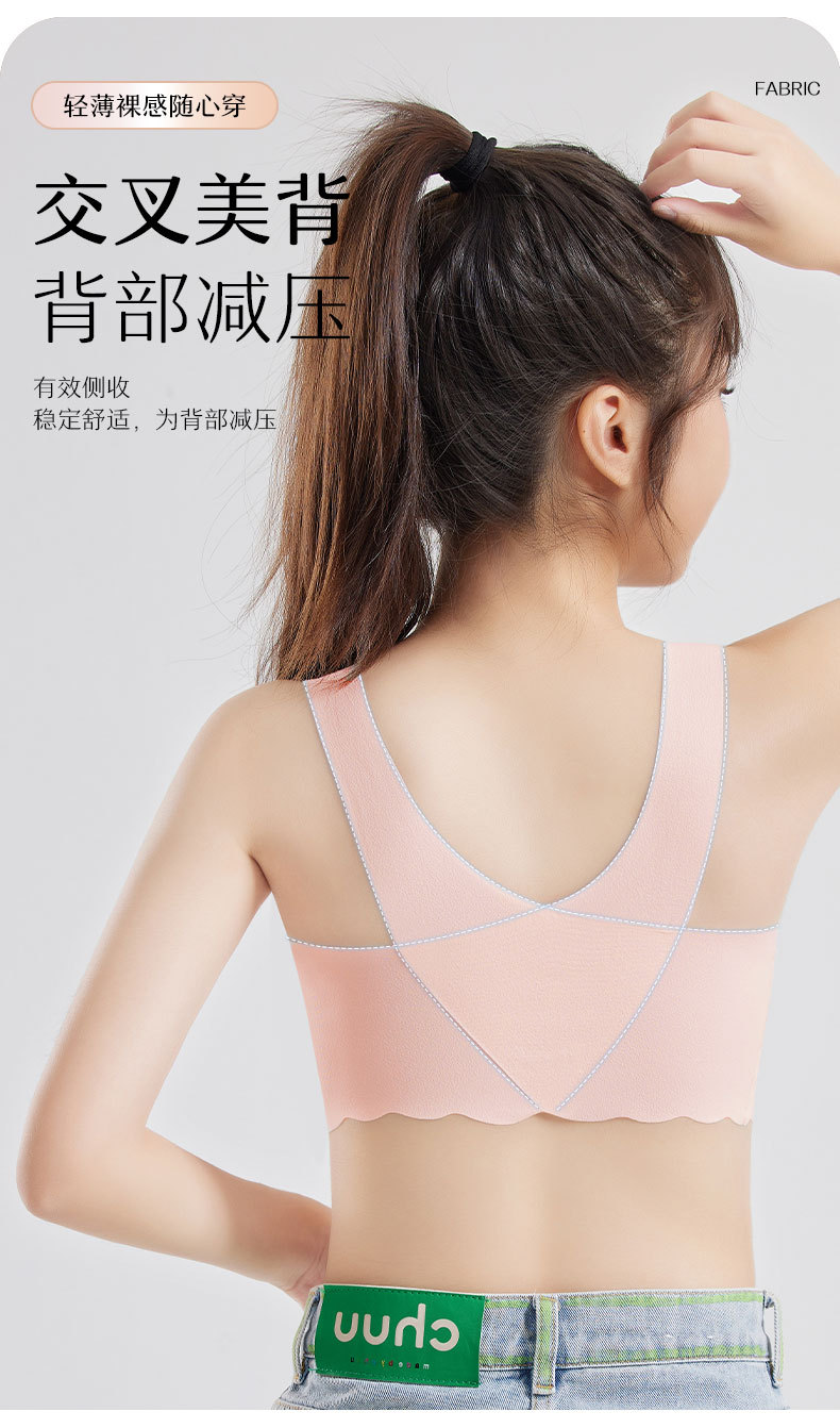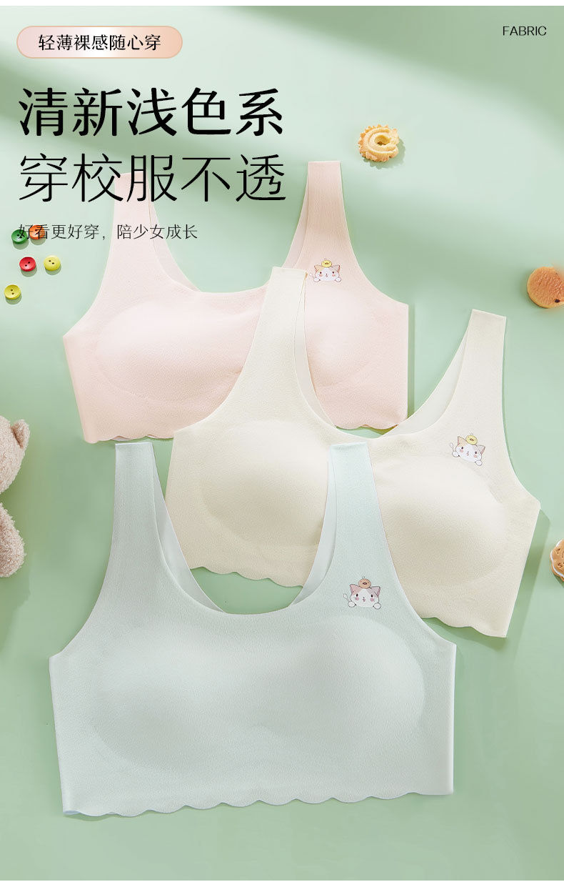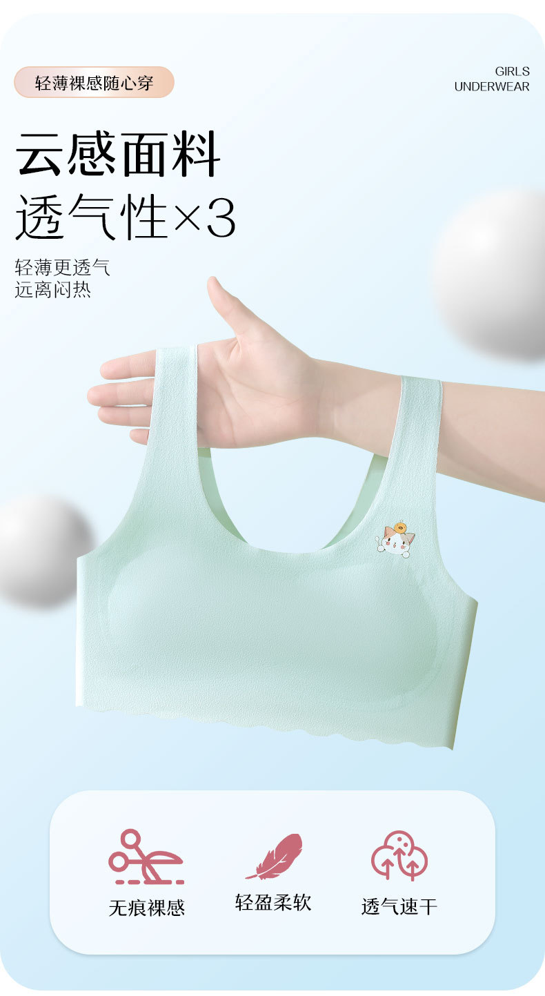 발달기 여아, 중학생, 고등학생, 아이스 실크 심리스 여아 조끼, 튜브탑, 스포츠 충격 방지 브라, 고정컵스토어 가기