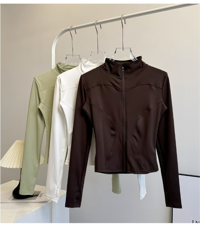 Q6J 새로운 요가복 스포츠 속건성 스탠드 업 칼라 탑 긴팔 자외선 차단 의류 여성용 겉옷 타이트 슬리밍 피트니스스토어 가기