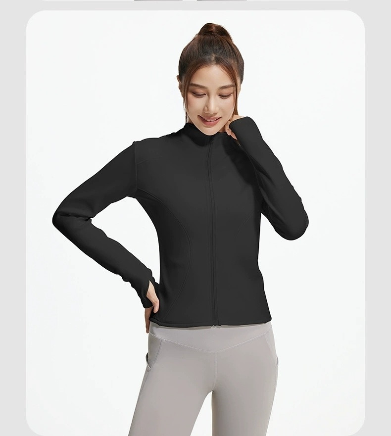 Q6J 새로운 요가복 스포츠 속건성 스탠드 업 칼라 탑 긴팔 자외선 차단 의류 여성용 겉옷 타이트 슬리밍 피트니스