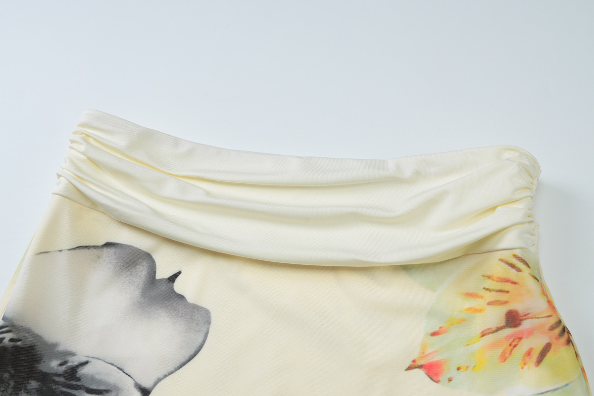 유럽과 미국 스타일 2025 봄과 여름 새로운 여성의 섹시한 교수형 목 스윙 칼라 백리스 탑 힙 스커트 투피스 세트