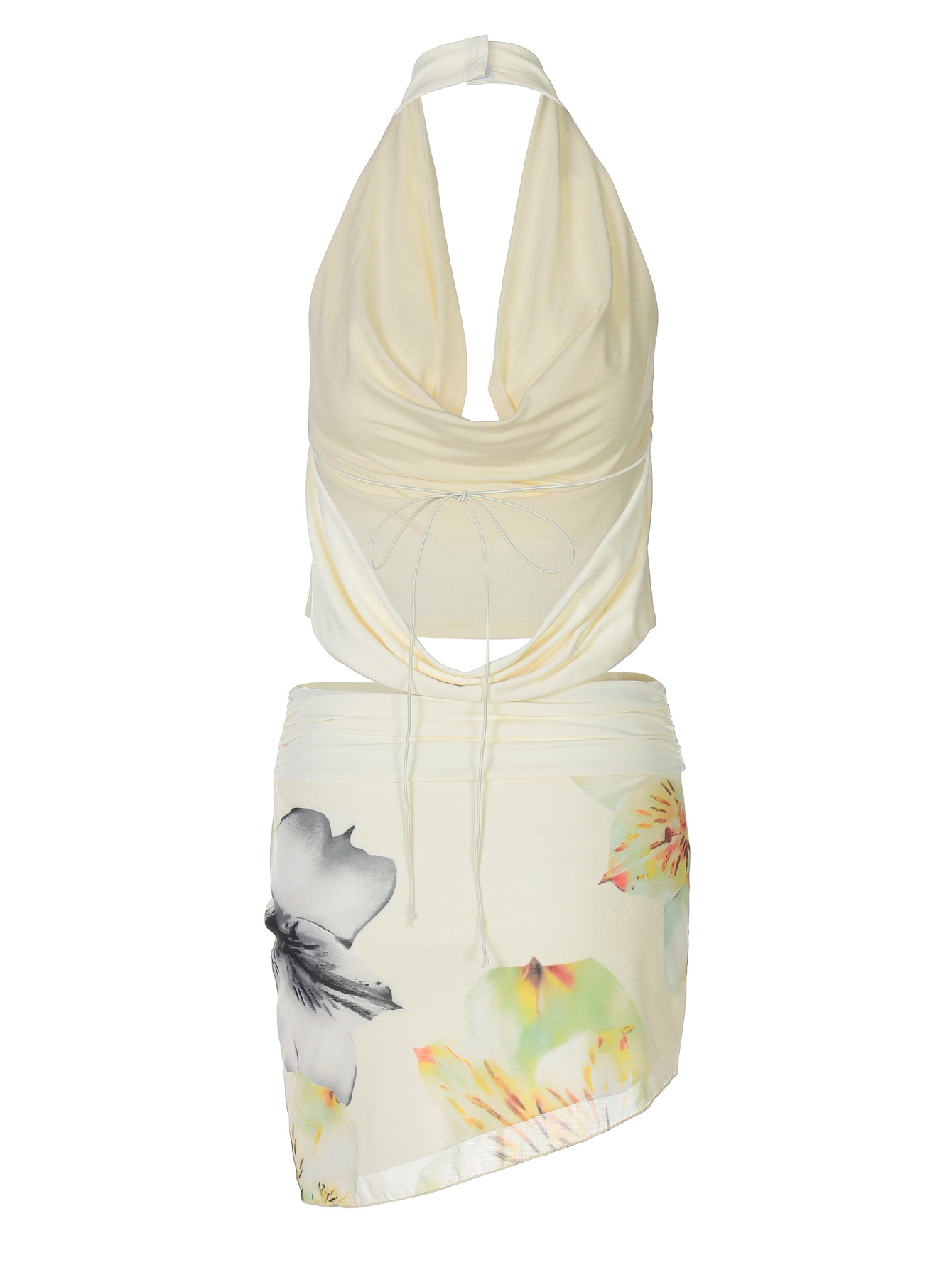 欧美女装新款纯色度假修身性感露背挂脖收腰上衣蓬蓬短裙连衣裙女