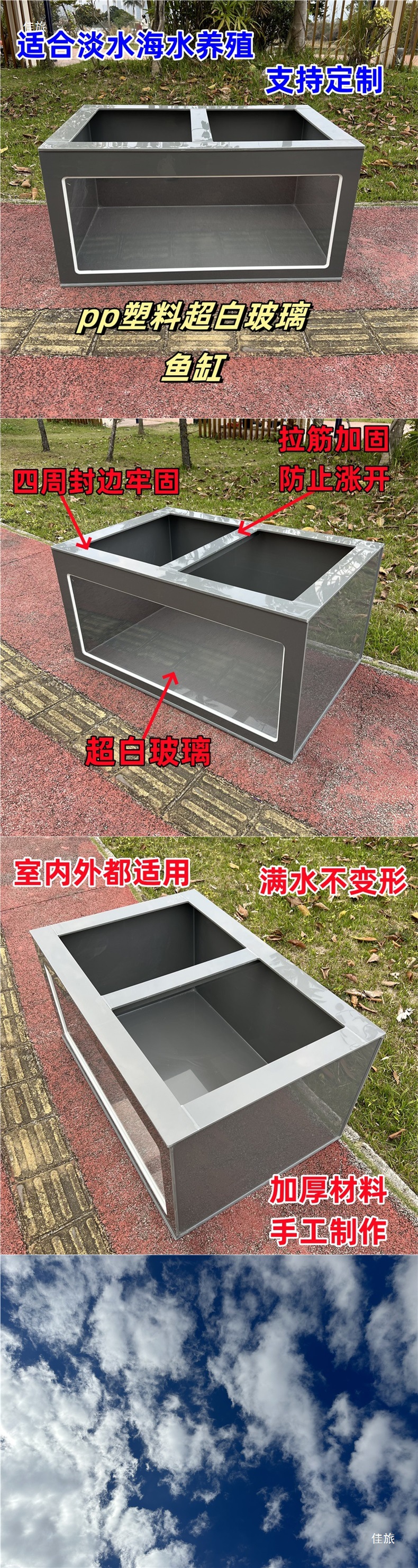 빌라 마당 발코니 가정용 대형 업그레이드 버전 짙은 회색 수조 물고기 연못 pp 플라스틱 잉어 투명 물고기 상자스토어 가기