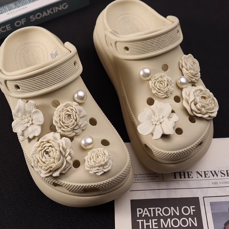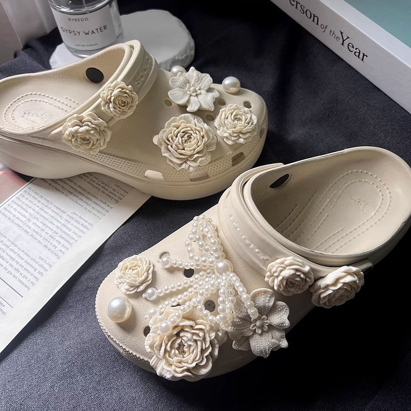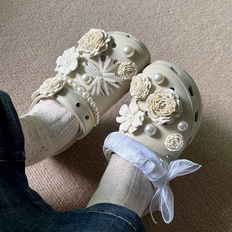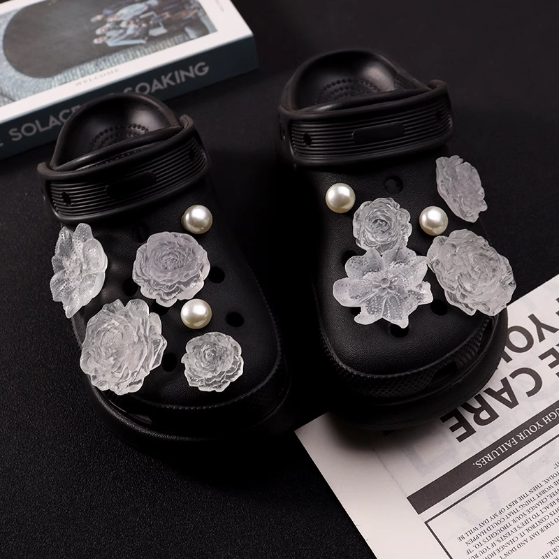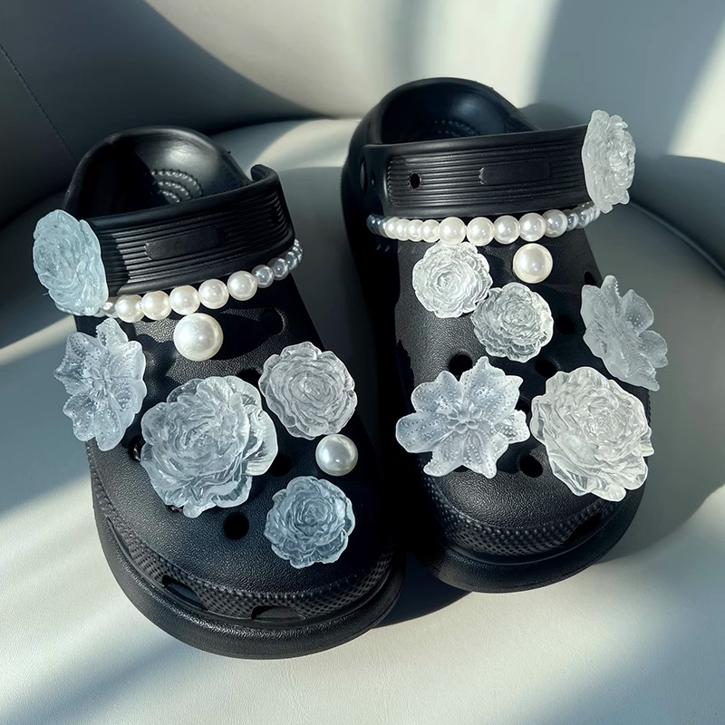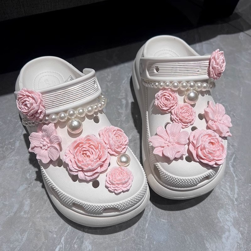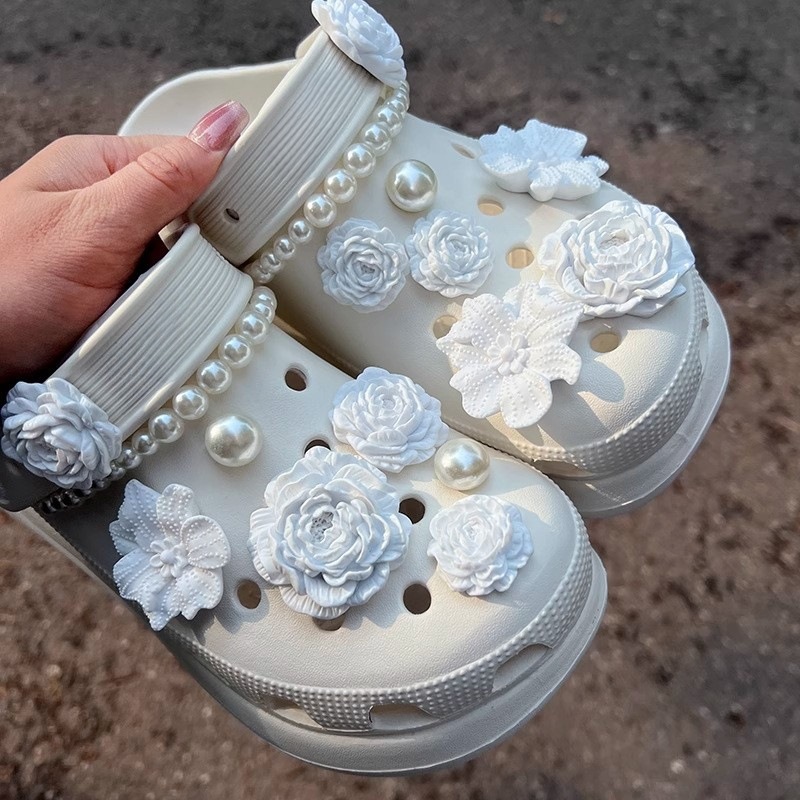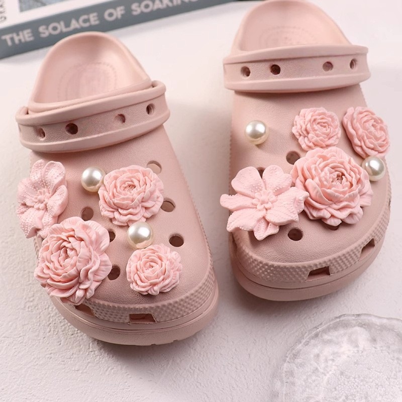 Croc 신발 액세서리, 고급 DIY 신발 버클, 진주 리본, 진달래 신발 꽃, 도매 입체 분리형에 적합스토어 가기