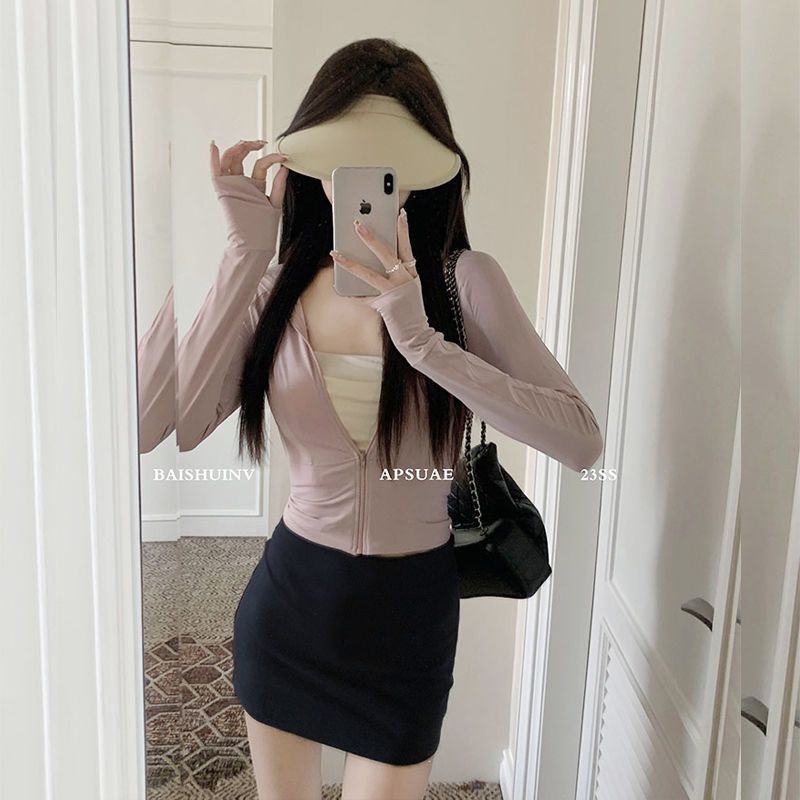 150cm 배꼽 짧은 스커트로 키가 커 보이고, 순수한 욕망 스타일, 키가 작은 사람들을 위한 하이웨이스트 힙 스커트, 몸매를 덮는 타이트한 스타일, 작은 핫걸들을 위한 커버업스토어 가기