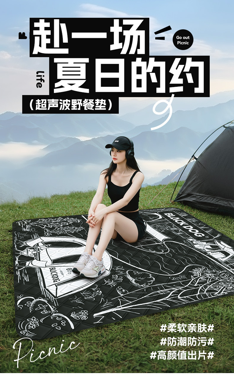 Blackdog 야외 초음파 피크닉 매트 방습 매트 두꺼운 해변 잔디 봄 나들이 캠핑 쿠션