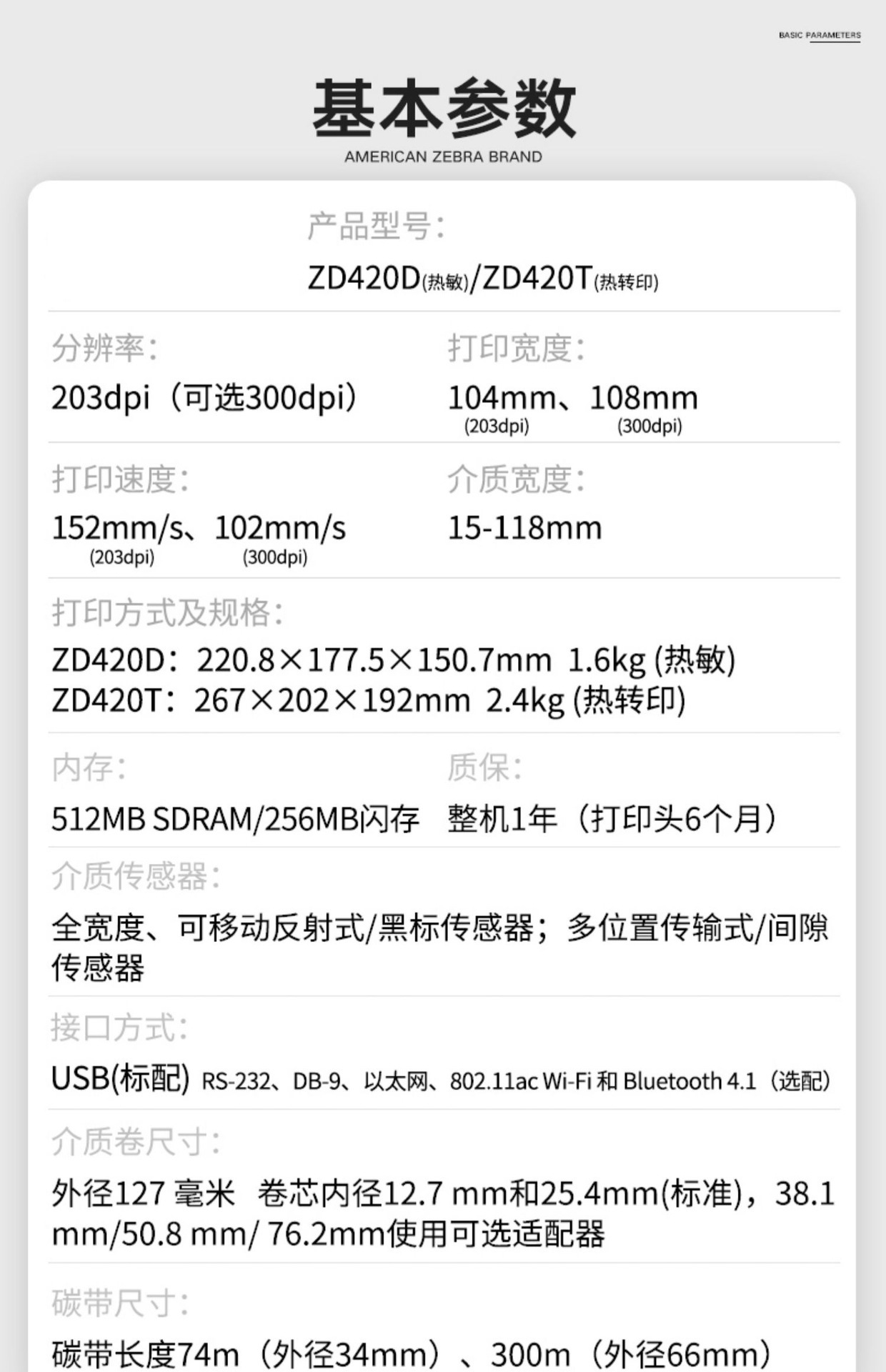 ZEBRA Zebra ZD420TZD421T QR 코드 자체 접착 바코드 라벨 프린터 정품 전자 주문