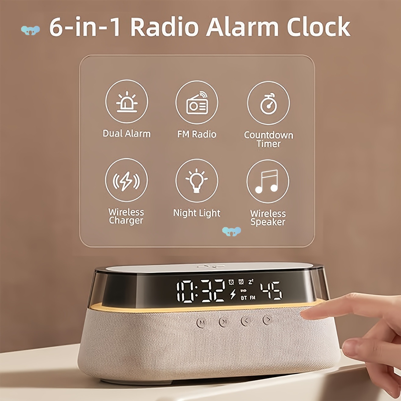 빠른 국경 간 6 In 1 디지털 알람 시계 침대 옆 시계 라디오