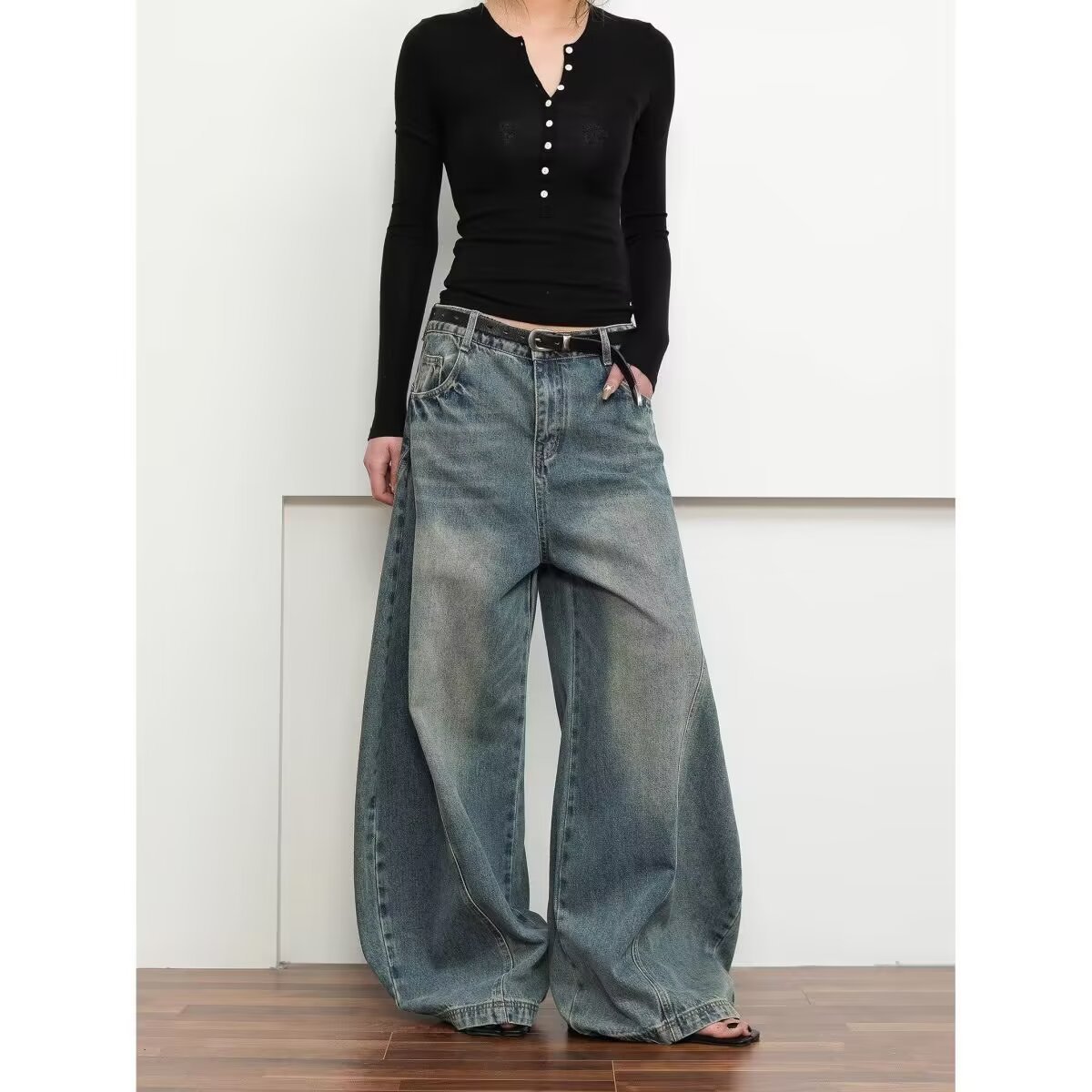 2025 새로운 청바지 남성 새로운 유행 남성 홍콩 스타일 여름 힙합 ins 하이 스트리트 미국 트렌드 잘 생긴 바지