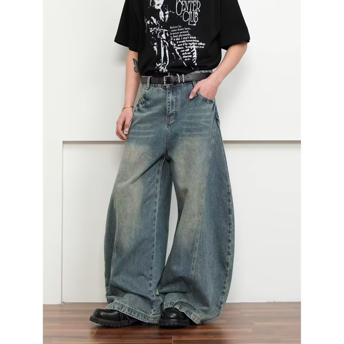 2025 새로운 청바지 남성 새로운 유행 남성 홍콩 스타일 여름 힙합 ins 하이 스트리트 미국 트렌드 잘 생긴 바지스토어 가기