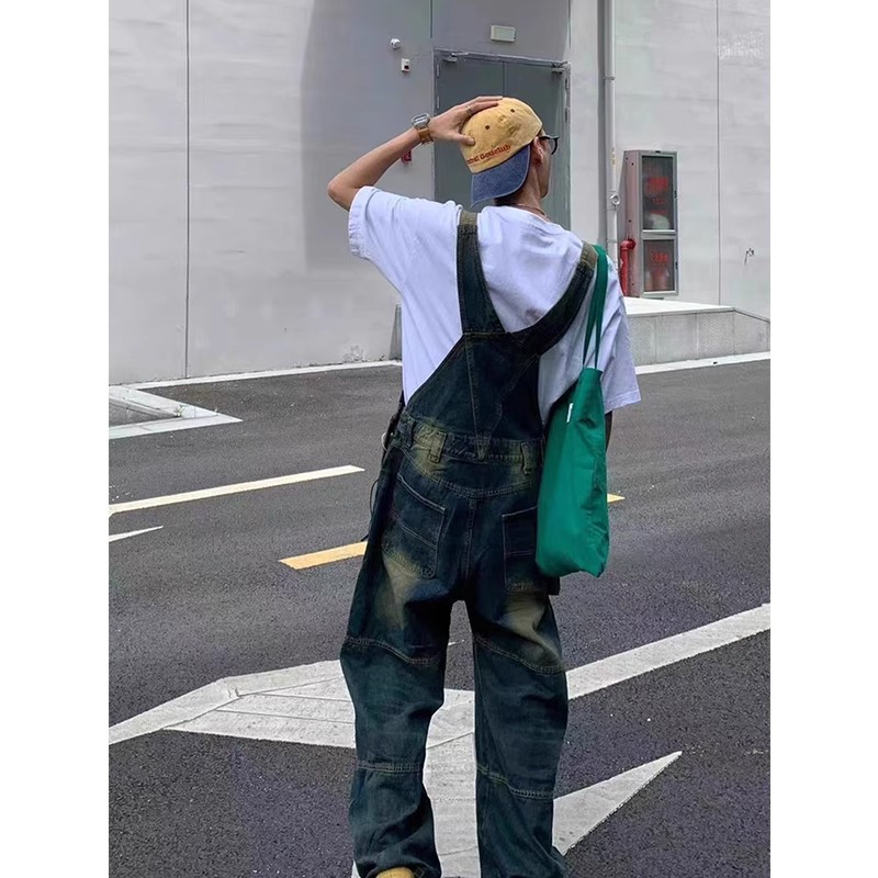 아메리칸 레트로 끈 청바지 남성용 클린핏 트렌디 브랜드 디스트레스드 워싱 루즈 스트레이트 스플라이스 원피스 팬츠스토어 가기