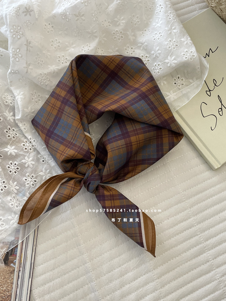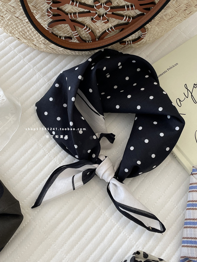 셀프 리저브 코튼 스몰 스퀘어 스카프, 고급 복고풍 체크 무늬 폴카 도트 스카프, 장식용 터번 스카프, 실크 스카프, 봄 여름 신스타일스토어 가기