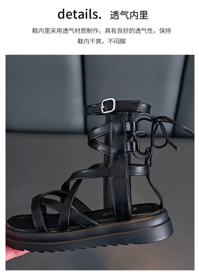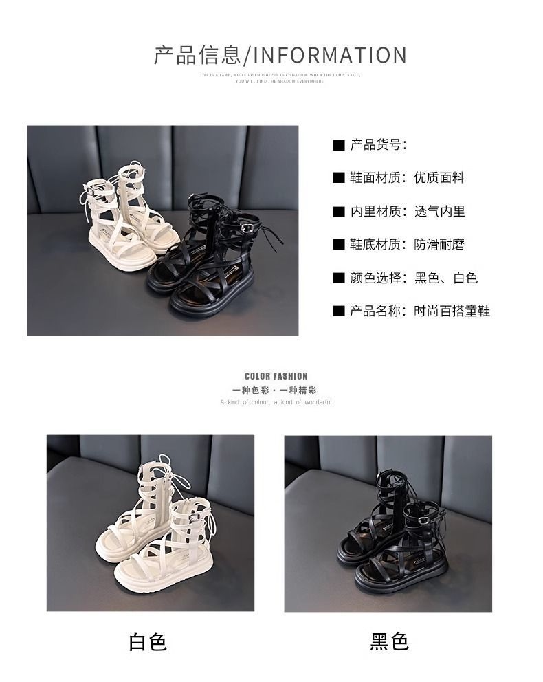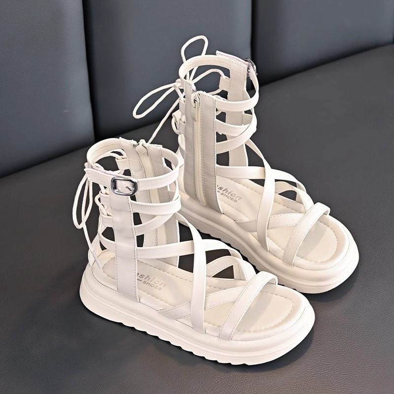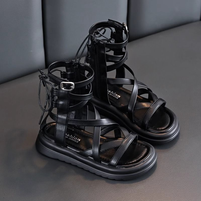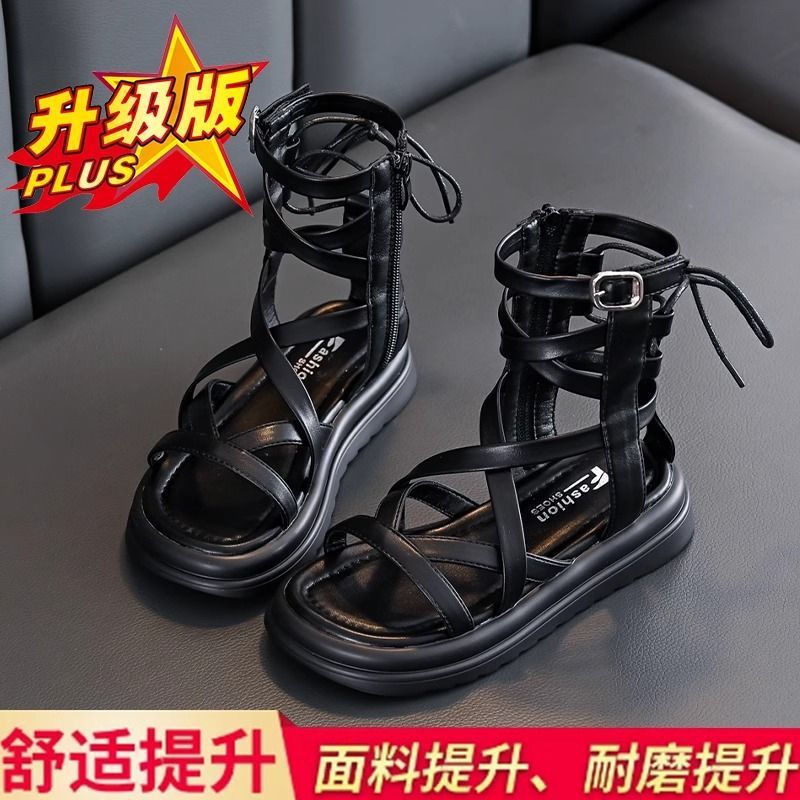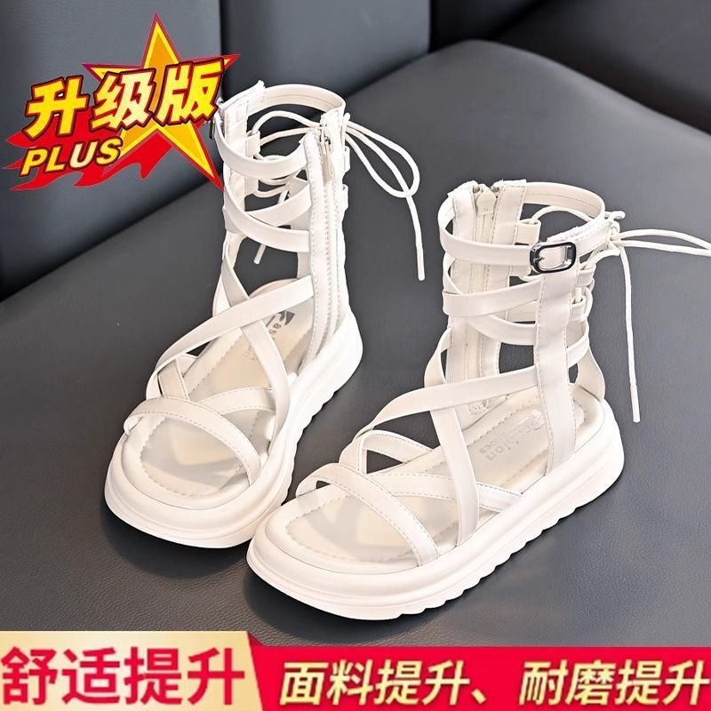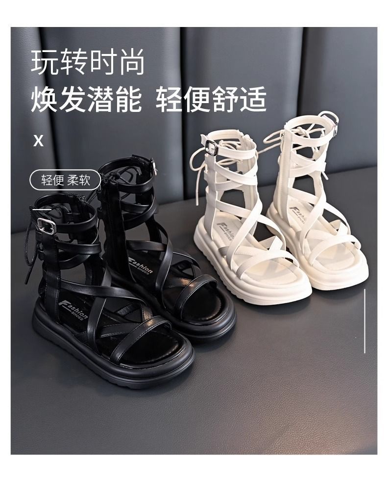 소녀 샌들 여름 2024 새로운 어린이 공주 신발 소녀 하이 탑 부드러운 밑창 로마 중형 및 대형 어린이 패션 신발스토어 가기