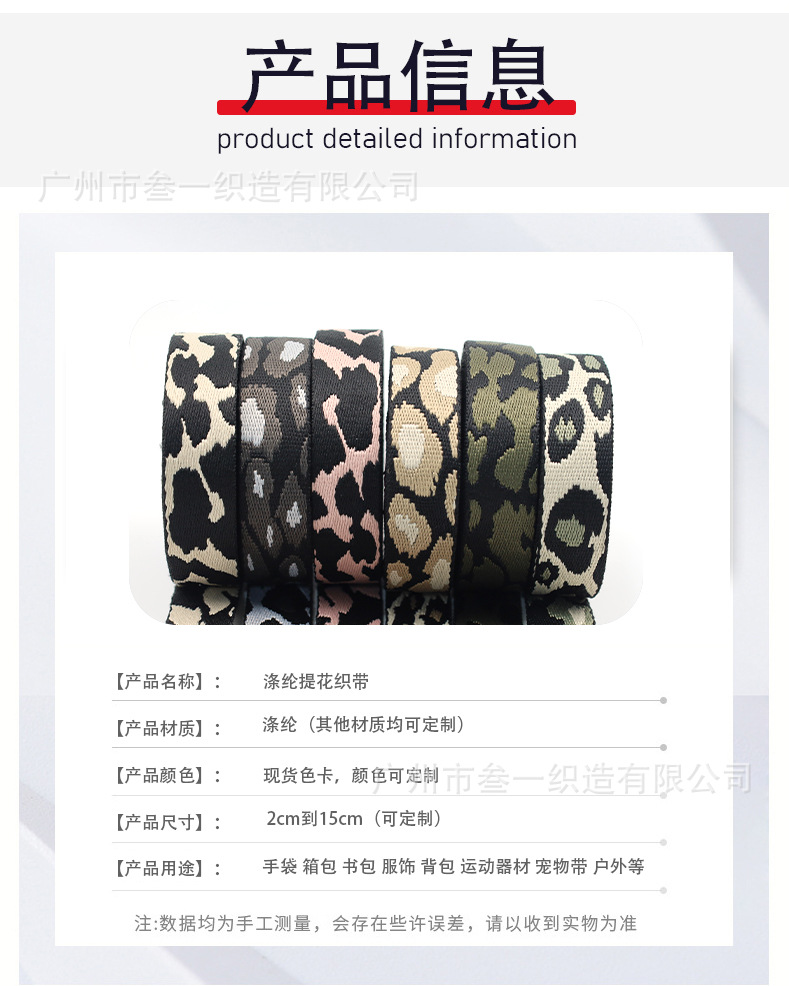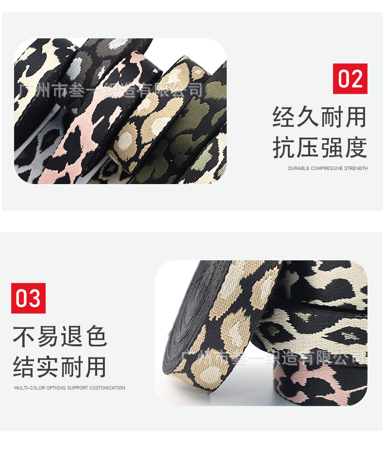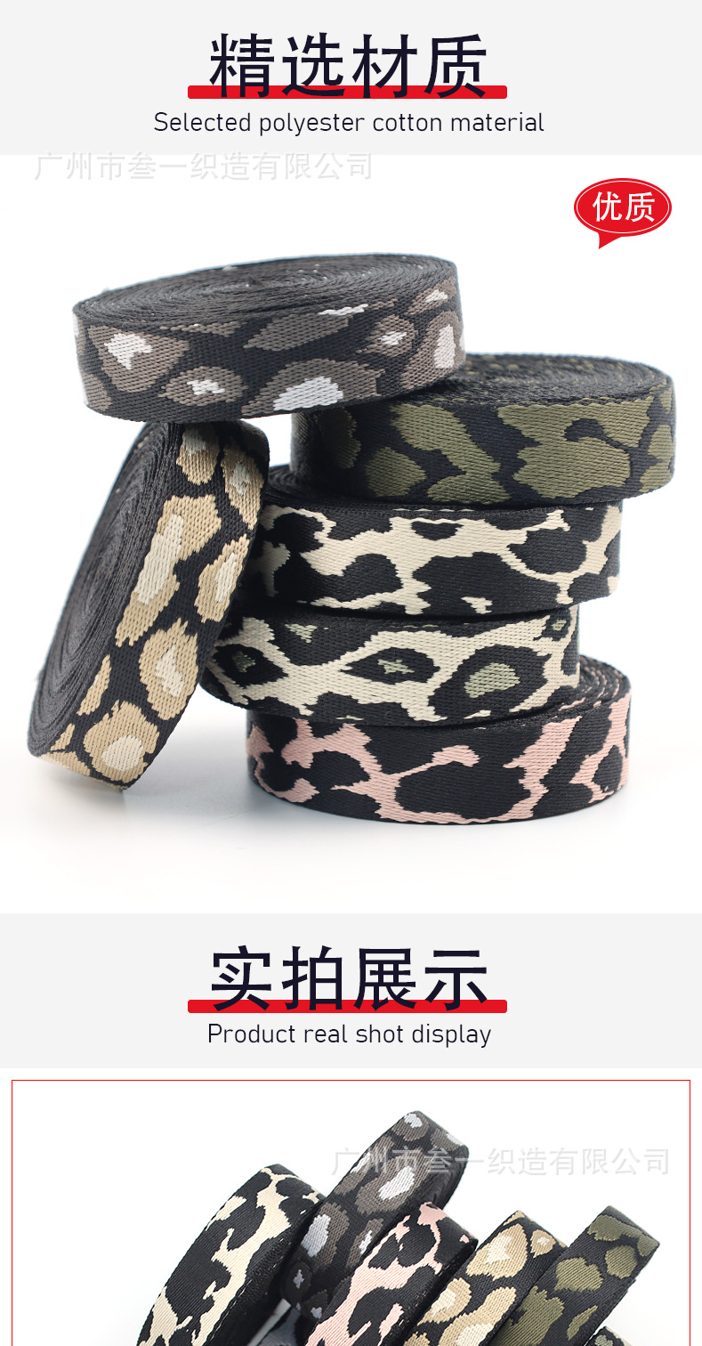 폴리에스터 자카드 리본 레오파드 패턴 2.5cm 폭 신발 및 모자 리본 액세서리 애완동물 목줄 가방 액세서리 끈