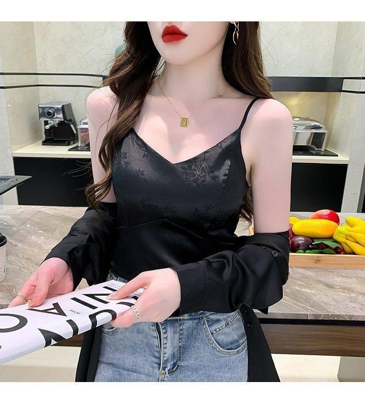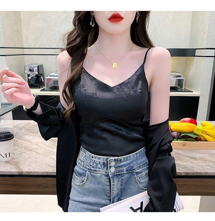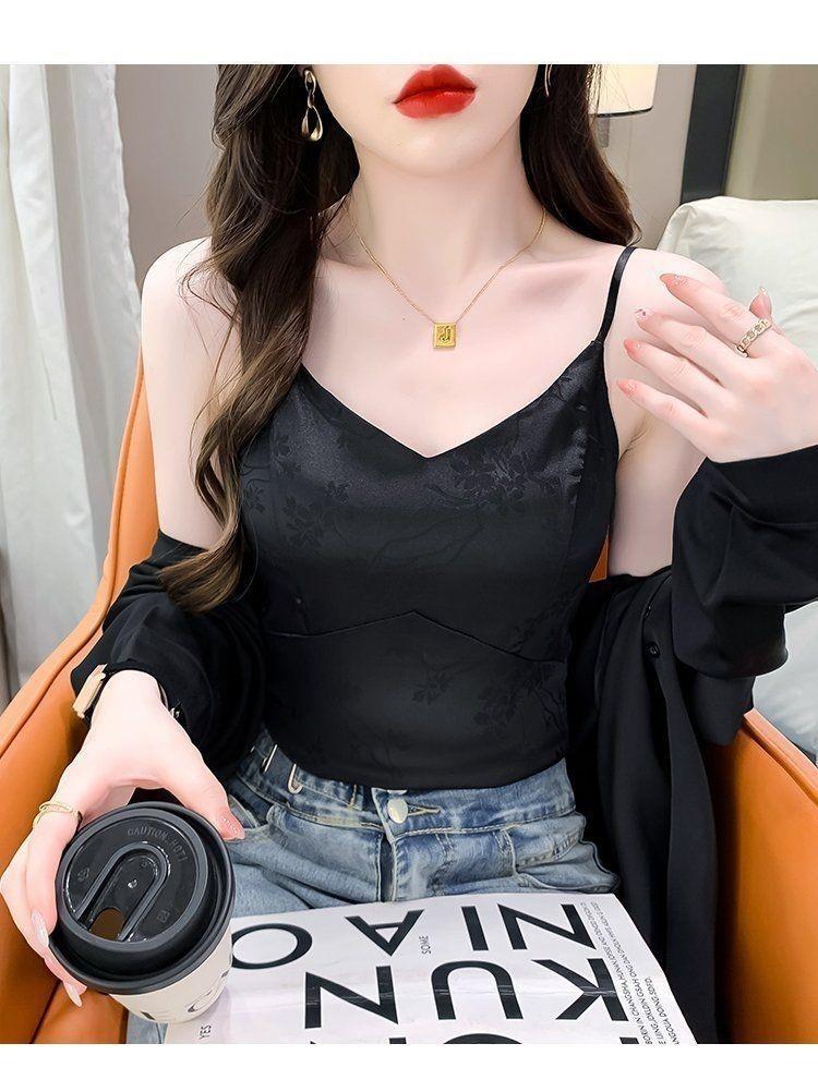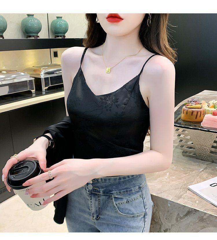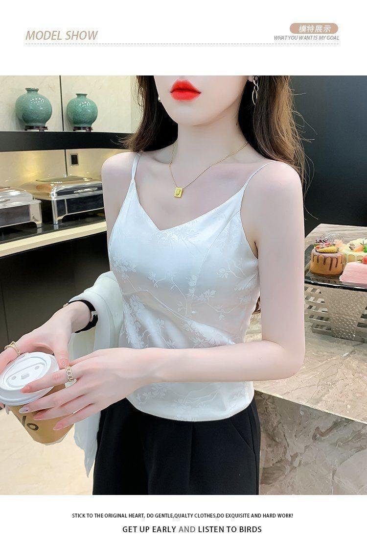 하이 엔드 새로운 중국 스타일 아세테이트 새틴 새로운 가슴 패드 캐미솔 바닥 자카드 정장 핫 소녀 탑 여성 유행