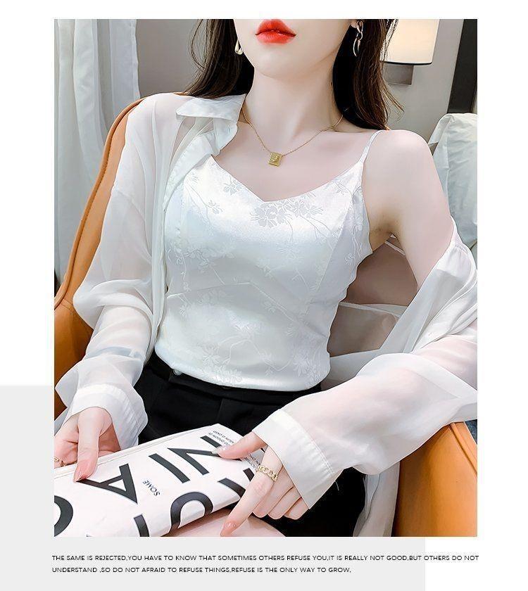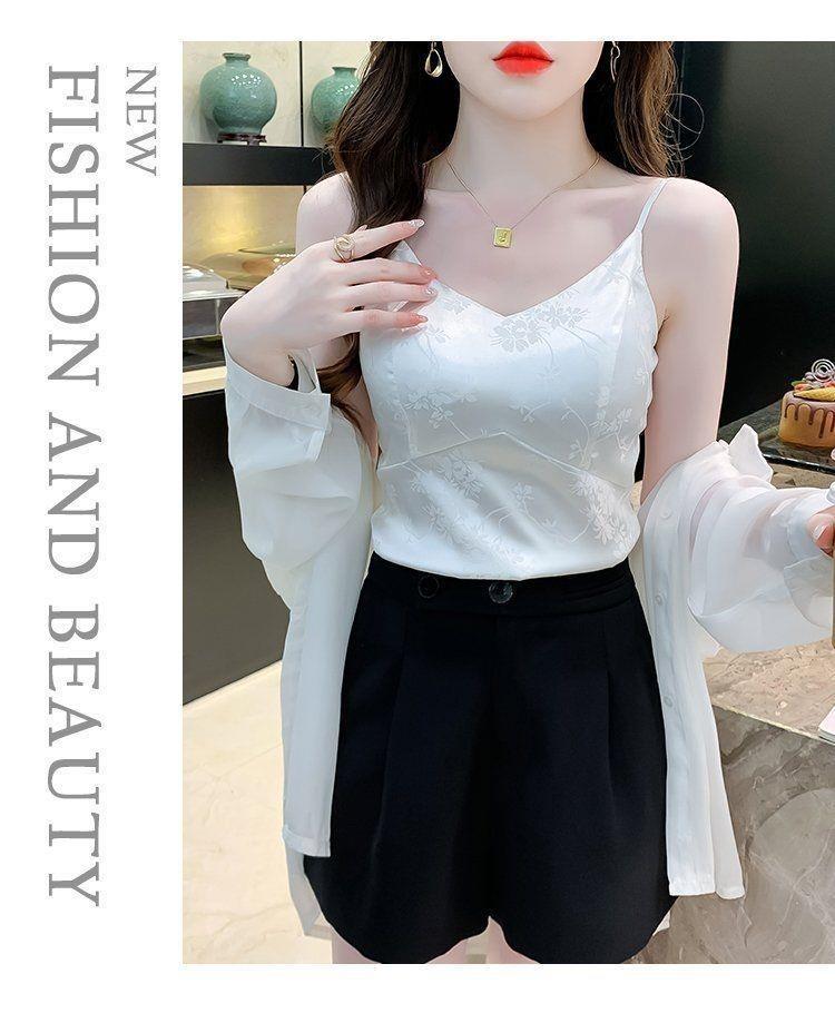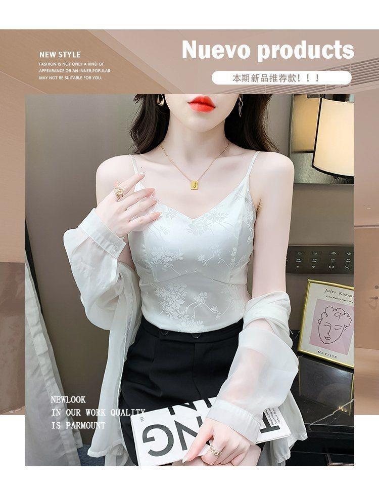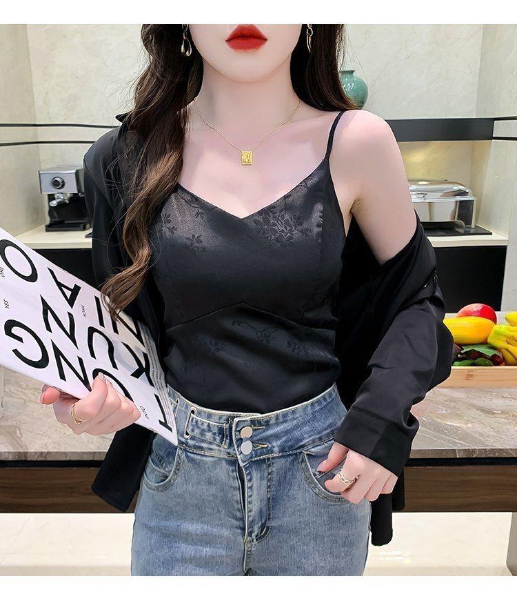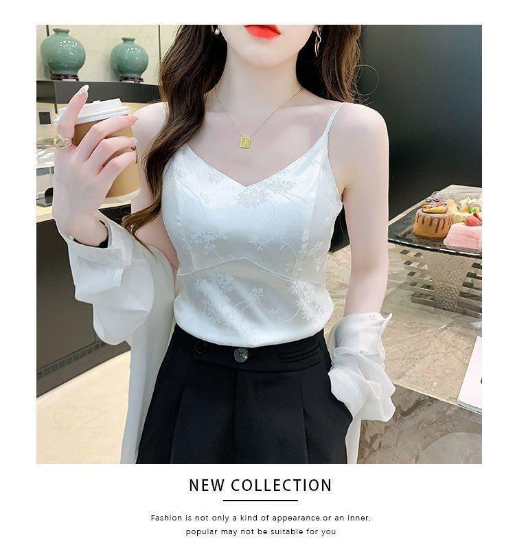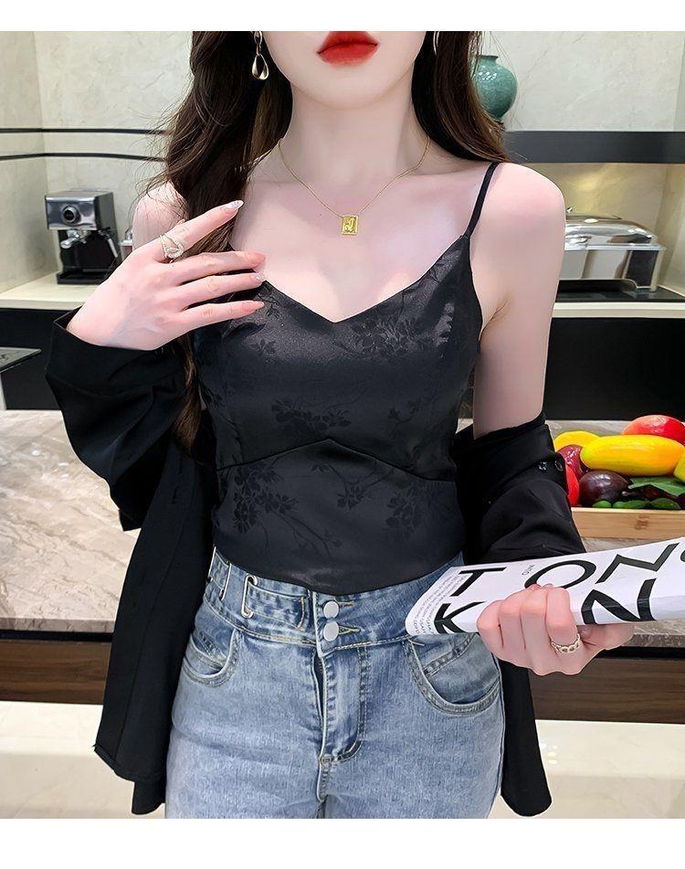 하이 엔드 새로운 중국 스타일 아세테이트 새틴 새로운 가슴 패드 캐미솔 바닥 자카드 정장 핫 소녀 탑 여성 유행