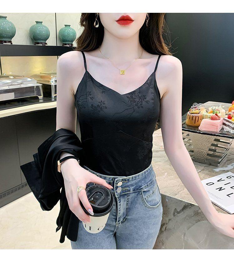 하이 엔드 새로운 중국 스타일 아세테이트 새틴 새로운 가슴 패드 캐미솔 바닥 자카드 정장 핫 소녀 탑 여성 유행스토어 가기