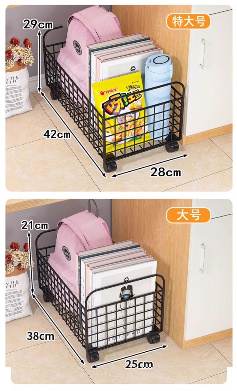 도르래 저장 상자 학생 책 저장 바구니 이동식 장난감 잡화 보관 바구니가있는 테이블 아래 보관 바구니