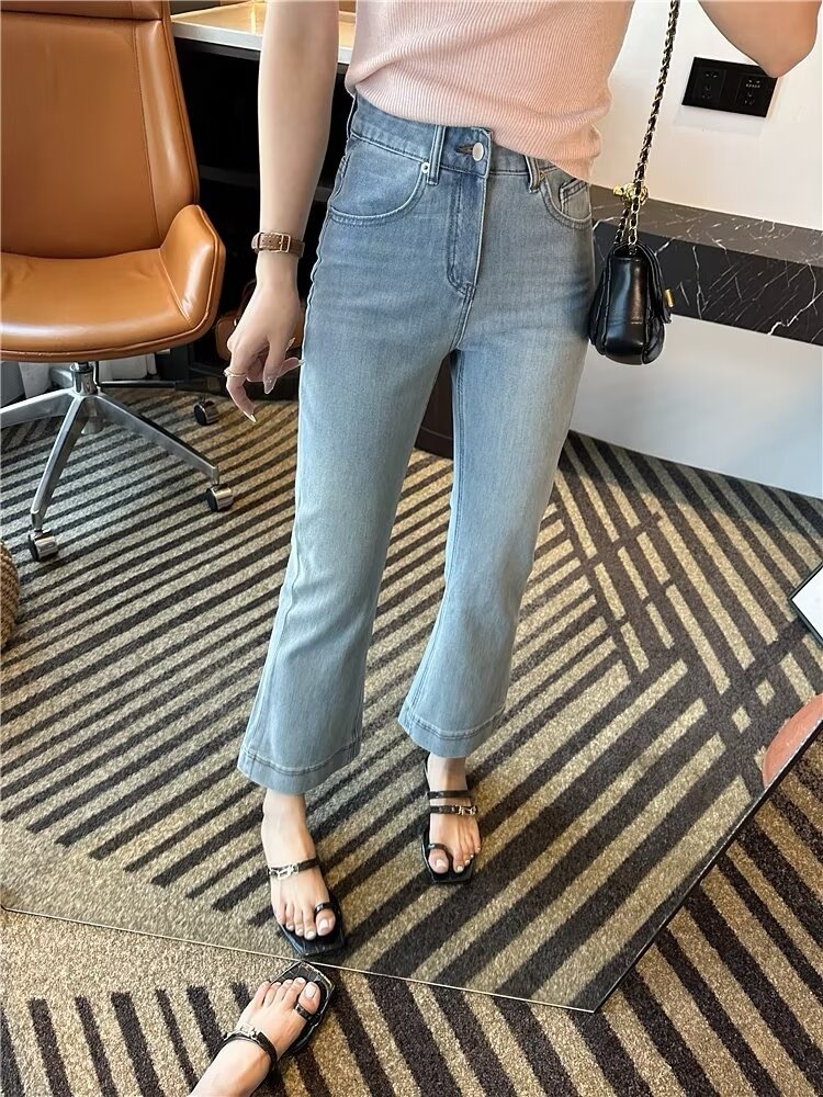맥스 데이크스 ® 여성용 9부 데님 플레어 팬츠 라이트 블루 여름 신작 플러스 사이즈 팻 mm 하이 웨이스트 슬리밍 청바지스토어 가기