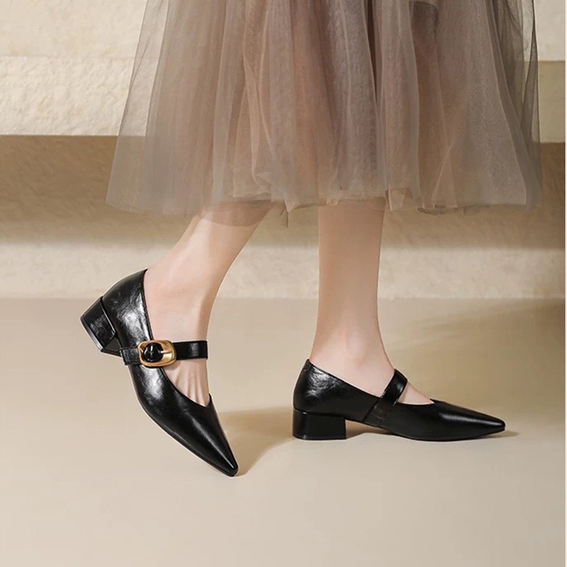 여성을 위한 두꺼운 굽의 뾰족한 신발 2025 새로운 스타일의 부드러운 밑창, 편안하고 다재다능한 하이힐, 원라인 스트랩 메리제인 여성화