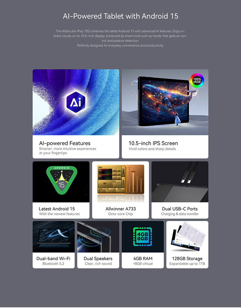Coolfangbi Magic iplay70S /U1035 태블릿 PC 10.5inch Allwinner A733 8코어 PAD