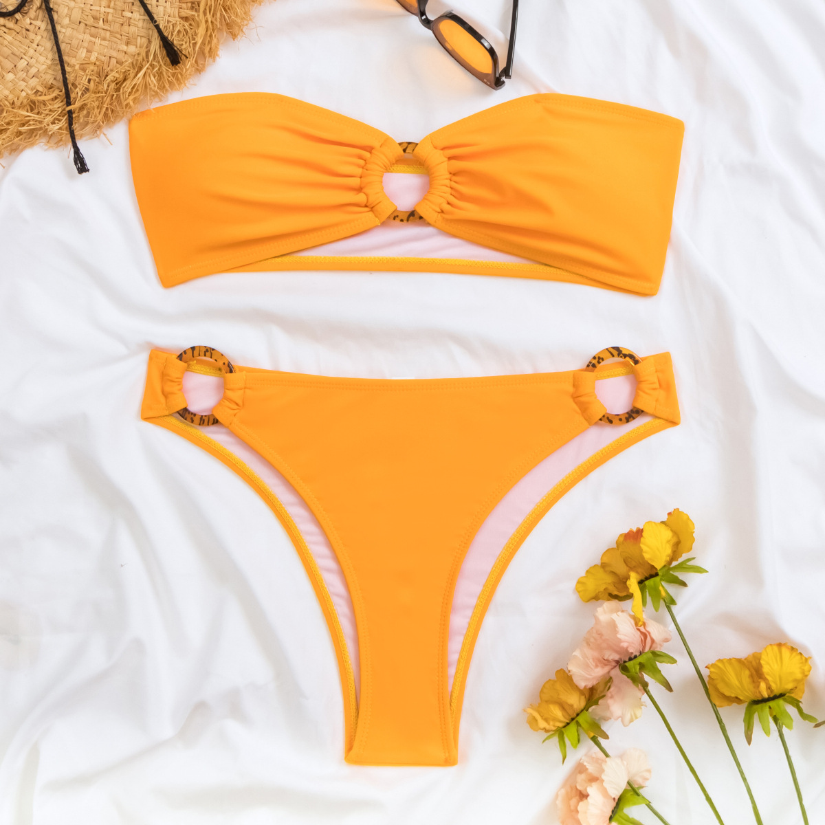 2025 유럽과 미국의 새로운 여성 스플릿 수영복 솔리드 컬러 튜브 탑 패션 섹시한 비키니 제조 업체 도매 수영복