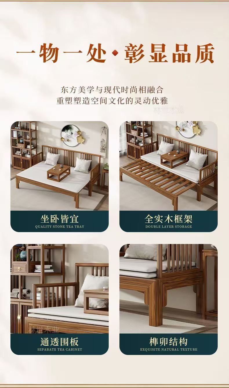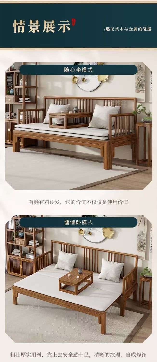 새로운 단단한 나무 슬라이딩 로한 침대, 새로운 중국 스타일의 소파 침대 조합, 이중 목적 풀아웃 다기능 접이식 침대스토어 가기