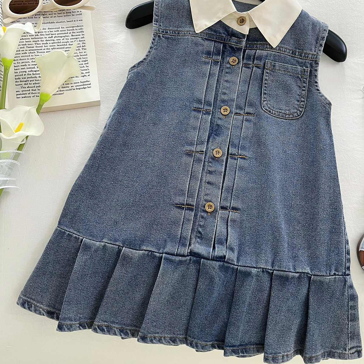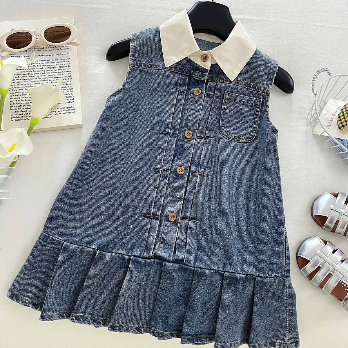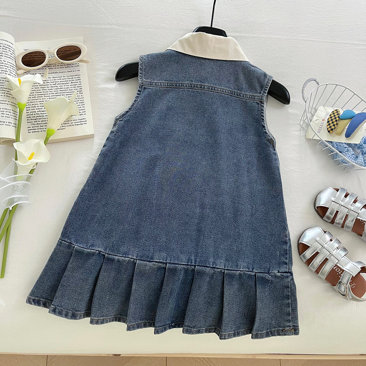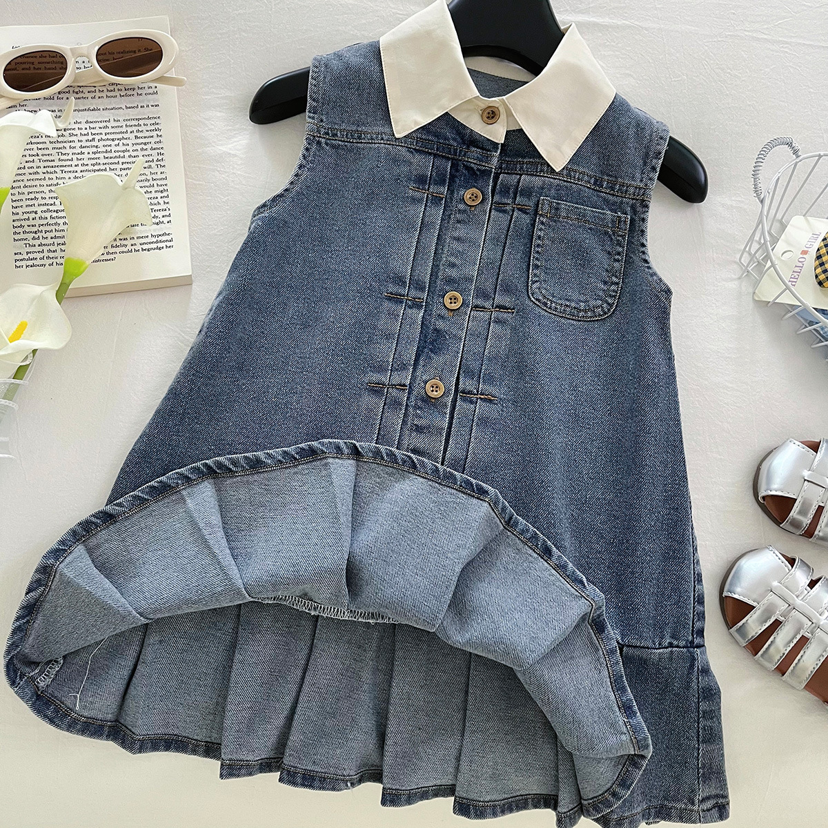 한국 스타일 아동 스타일 조끼 드레스 소녀 스타일 드레스 큰 아동 의류 인터넷 연예인 불규칙한 2025 여름 새로운 스타일