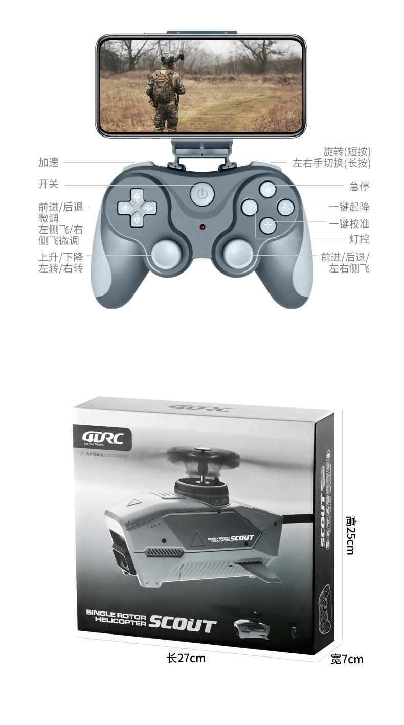 产品名称:4D-L1迷你黑蜂单桨无副翼航拍无人机 遥控直升飞机