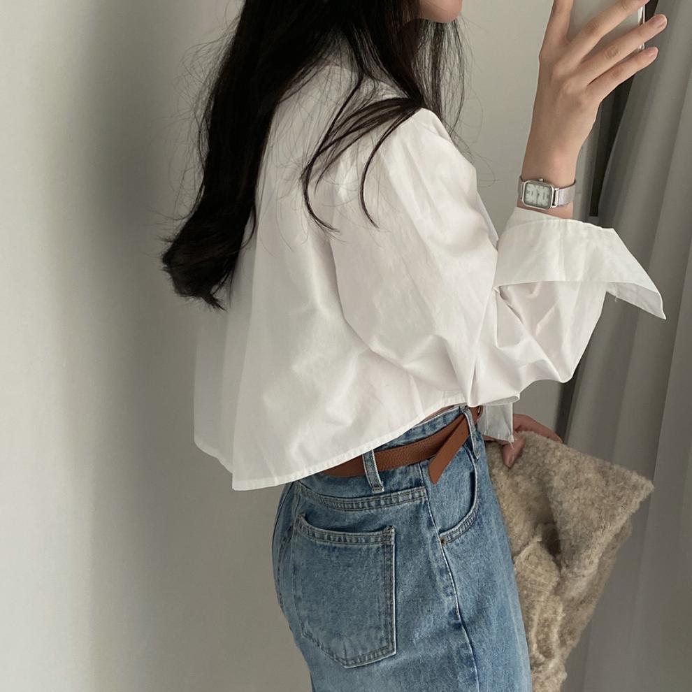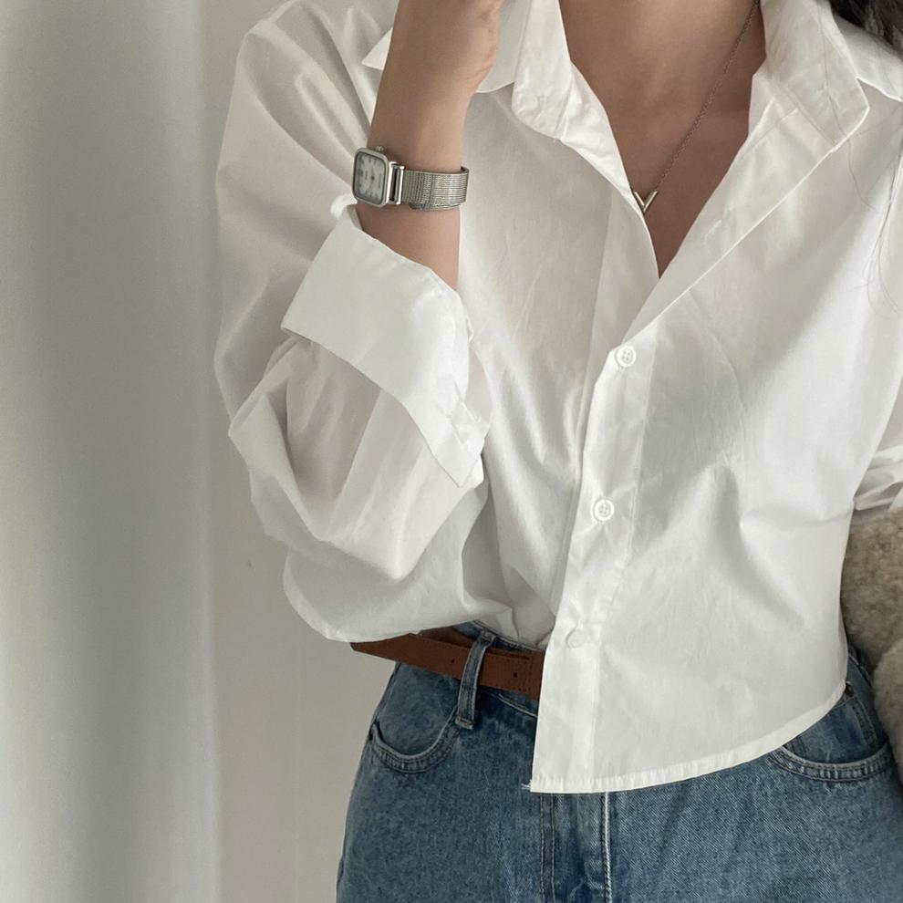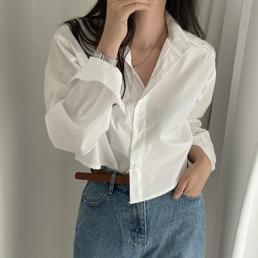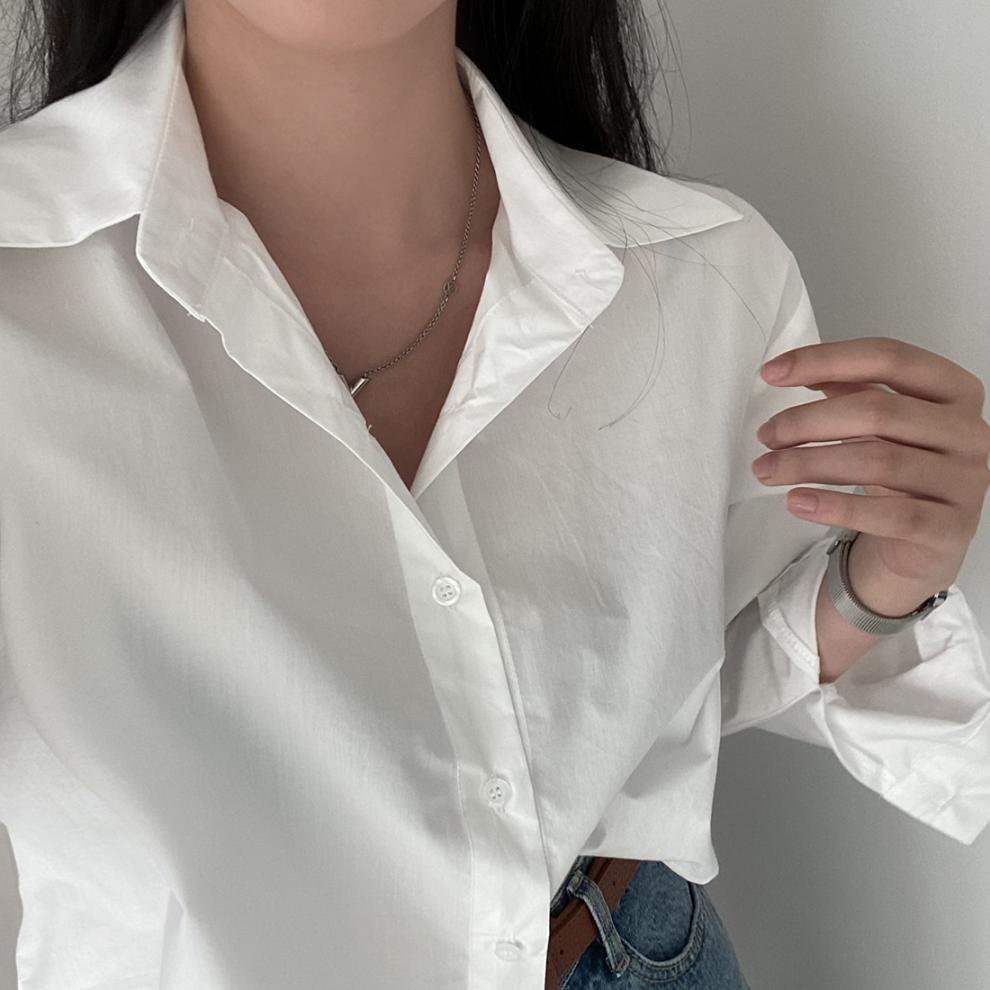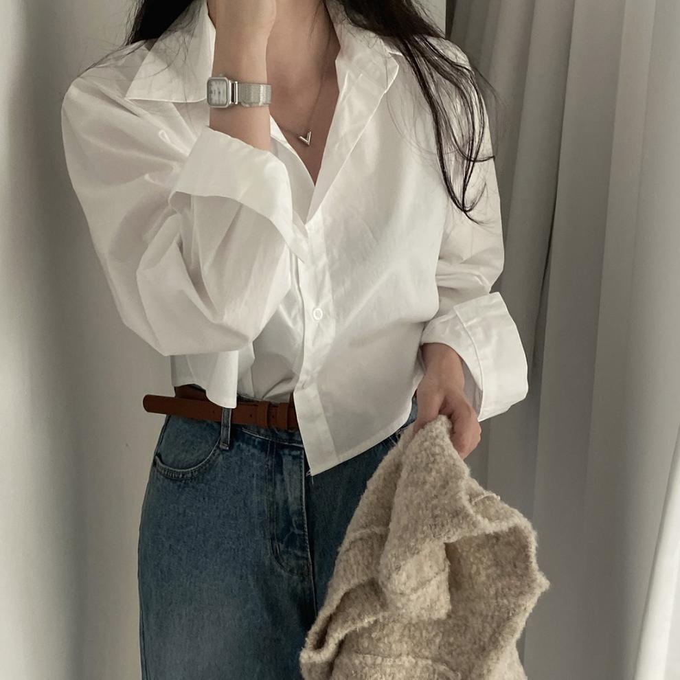 간단한 캐주얼 캔디 컬러 기본 셔츠 디자인 센스 짧은 옷깃 통근 느슨한 셔츠 긴 소매 탑스토어 가기