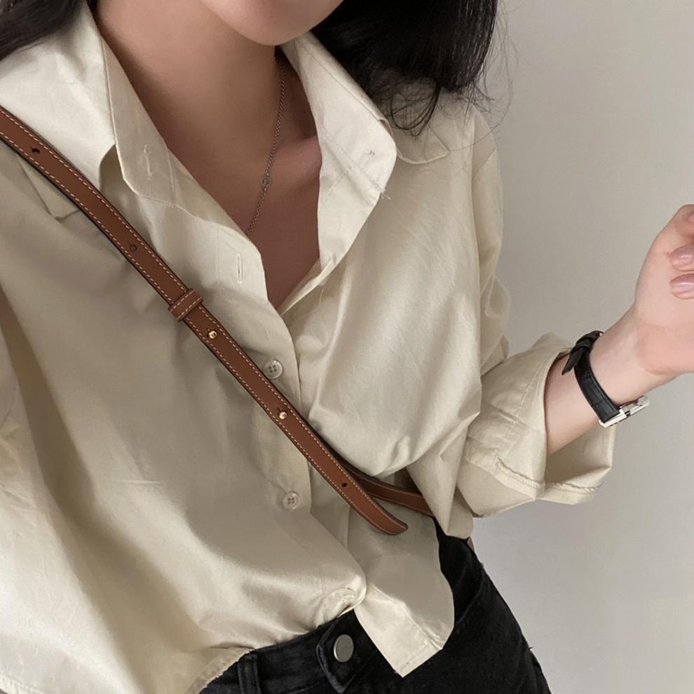 간단한 캐주얼 캔디 컬러 기본 셔츠 디자인 센스 짧은 옷깃 통근 느슨한 셔츠 긴 소매 탑