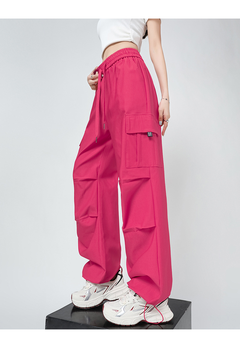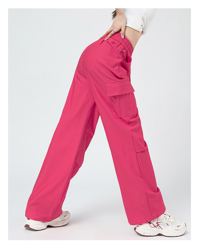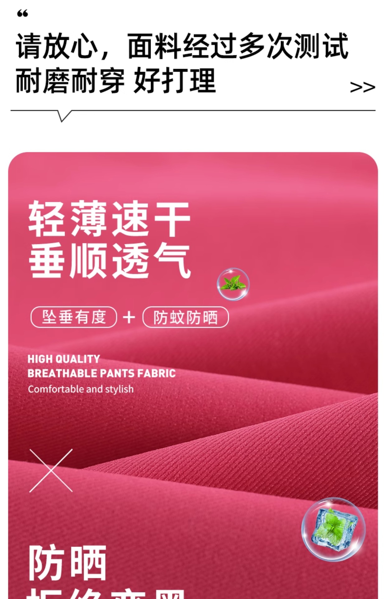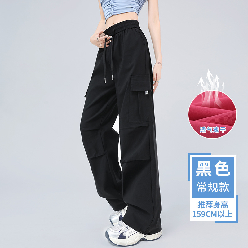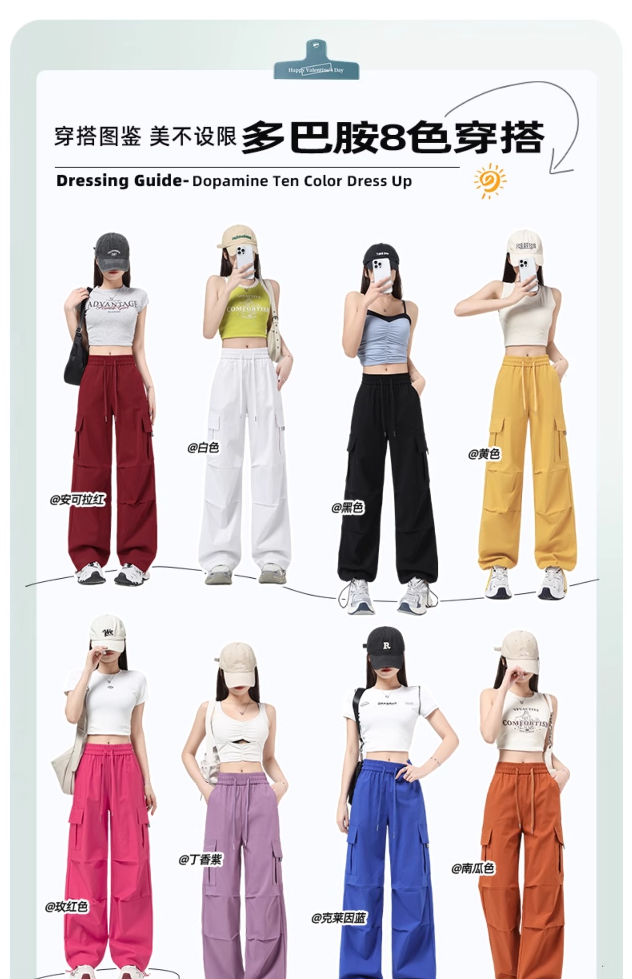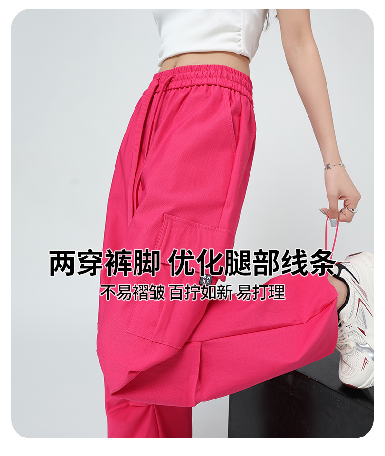 로즈 레드 작업복 여성 여름 얇은 2025 새로운 공수 아메리칸 스타일 속건성 아이스 실크 등산 와이드 레그 스포츠 바지스토어 가기