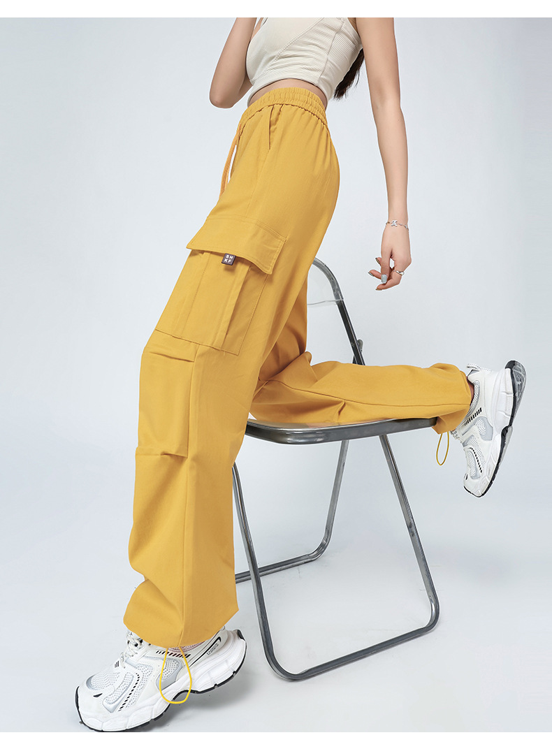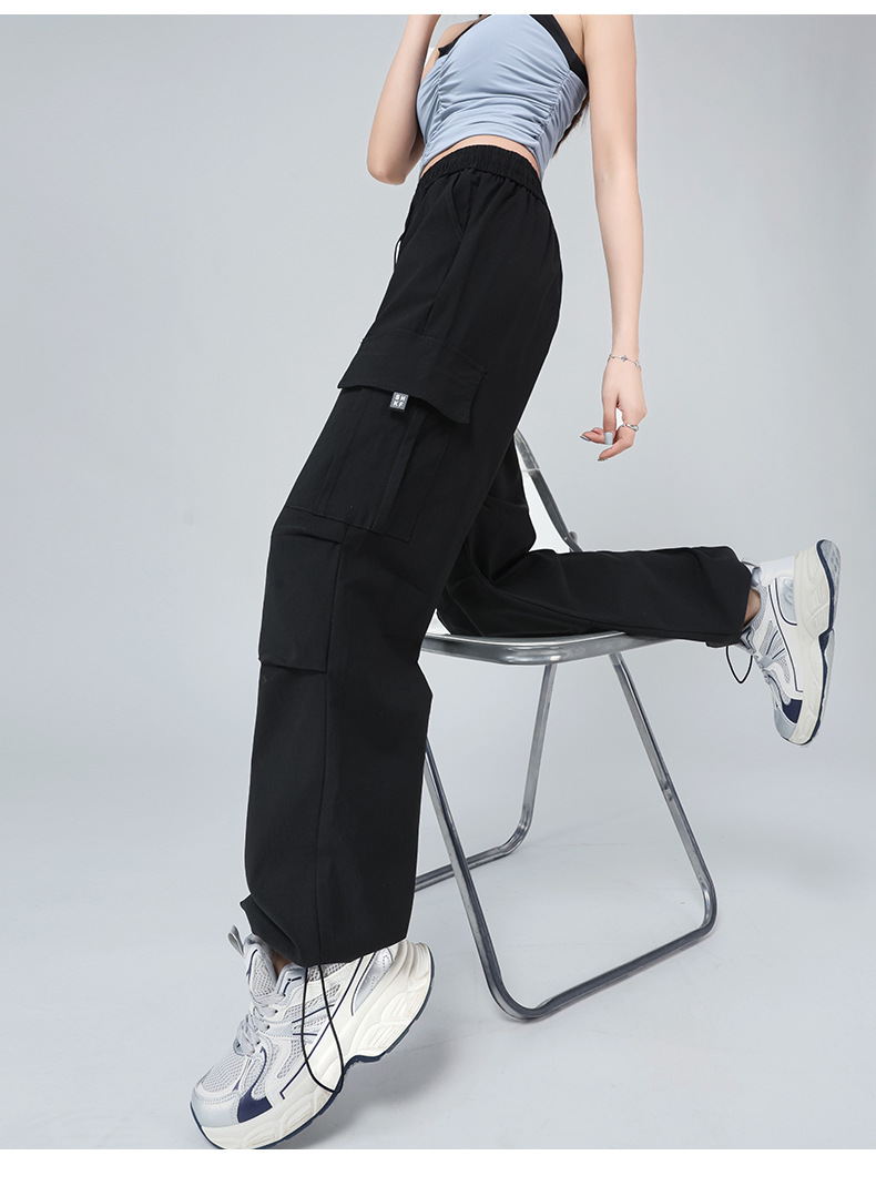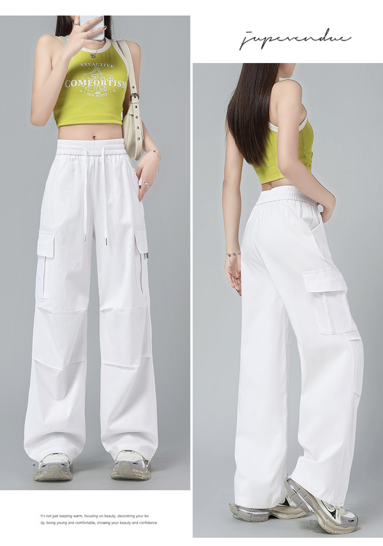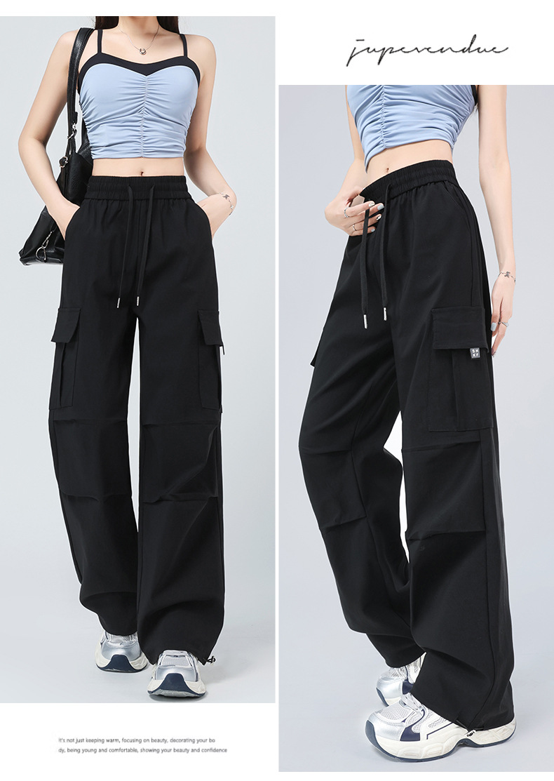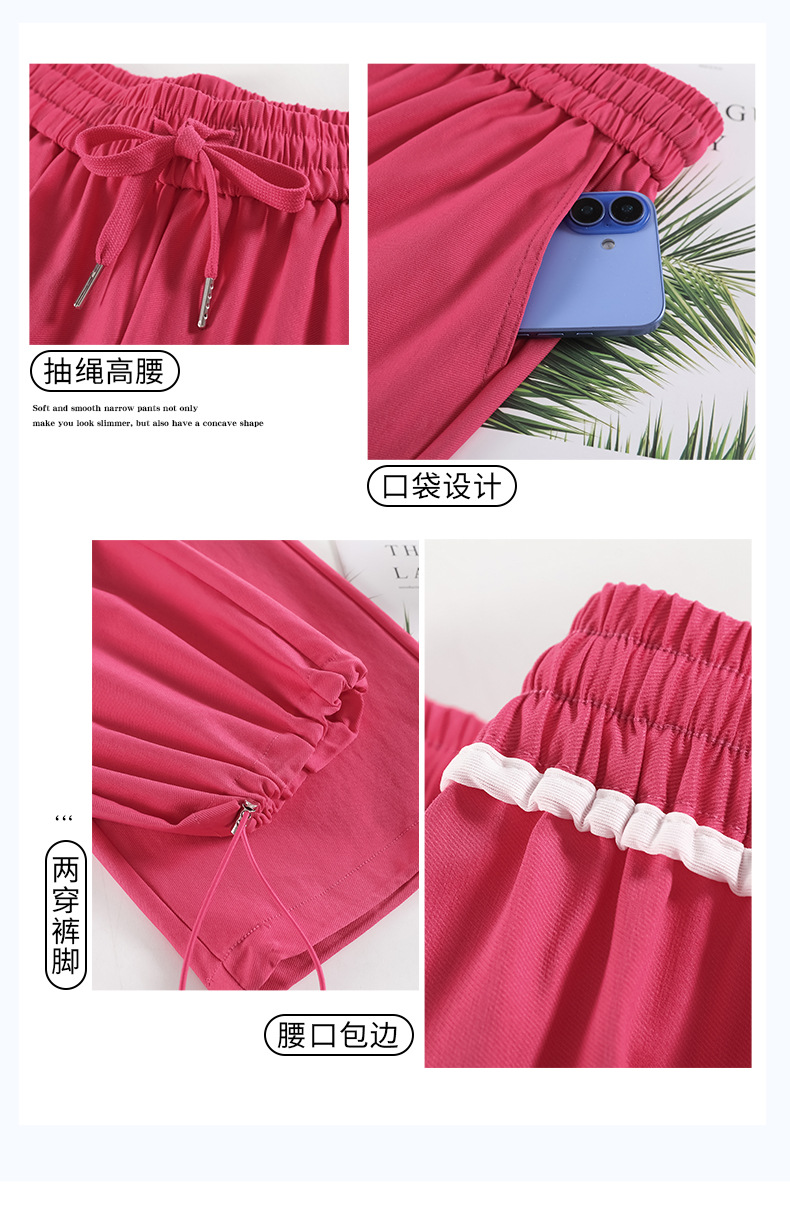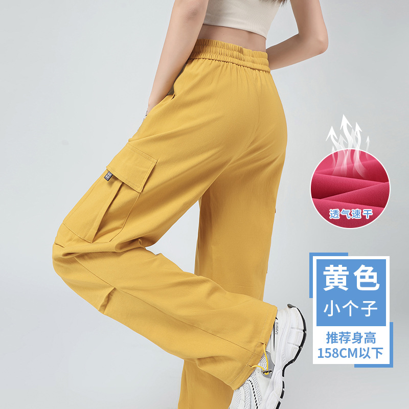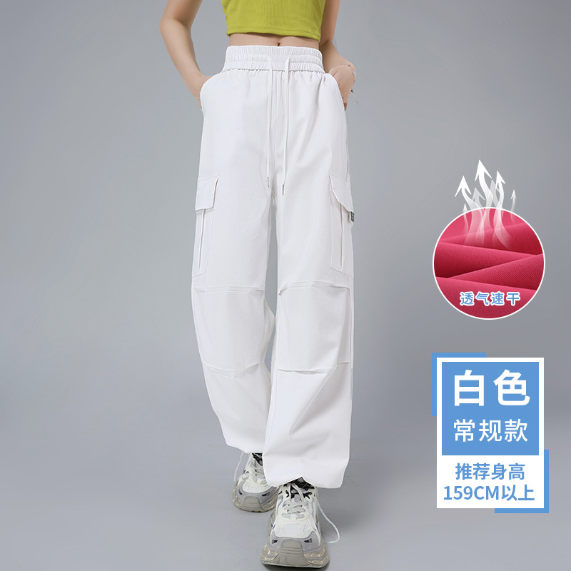 로즈 레드 작업복 여성 여름 얇은 2025 새로운 공수 아메리칸 스타일 속건성 아이스 실크 등산 와이드 레그 스포츠 바지스토어 가기