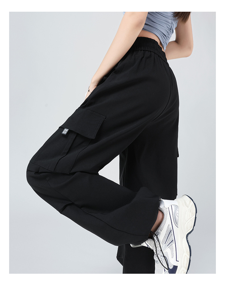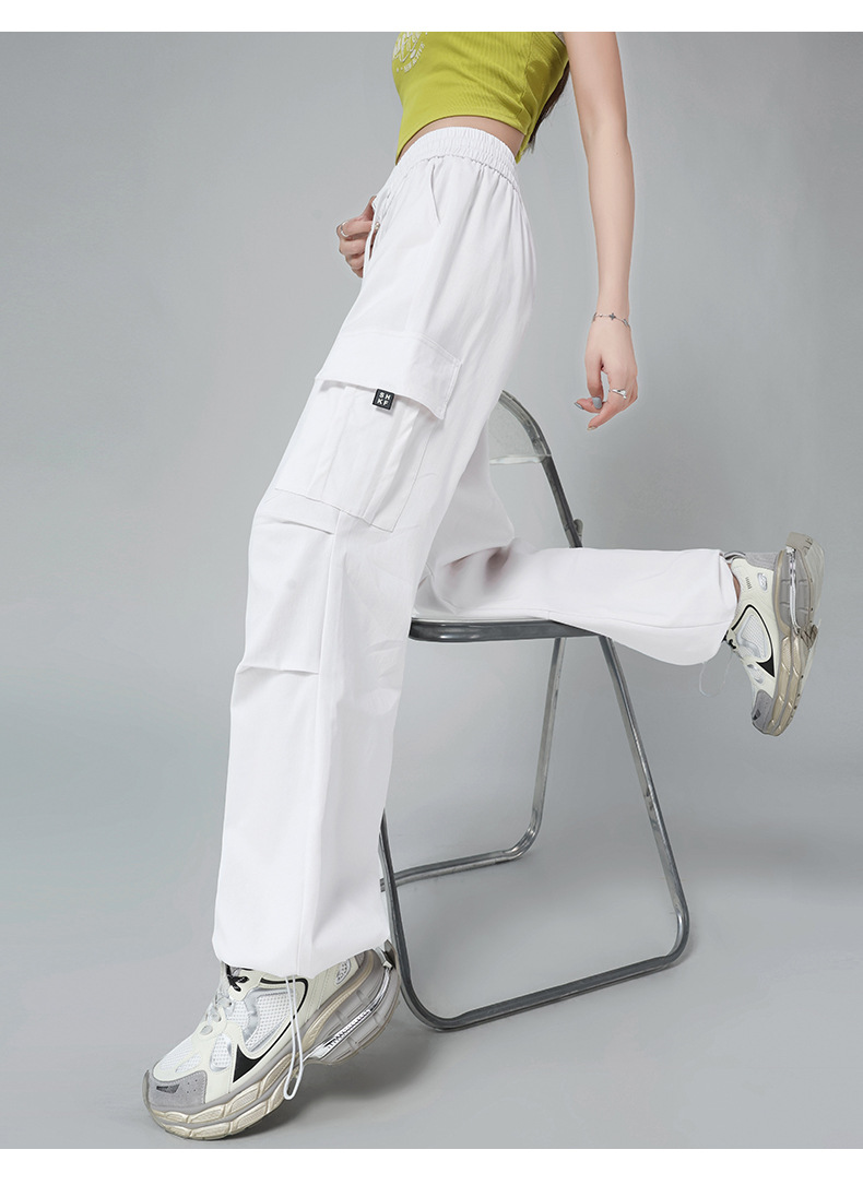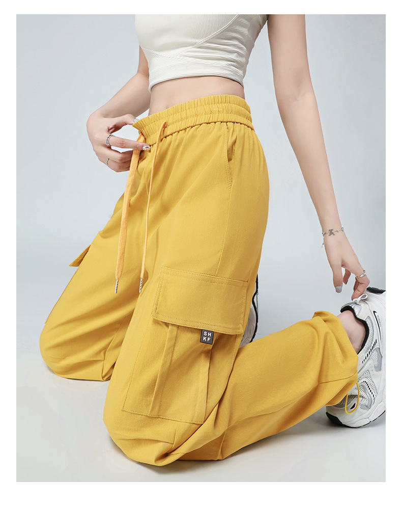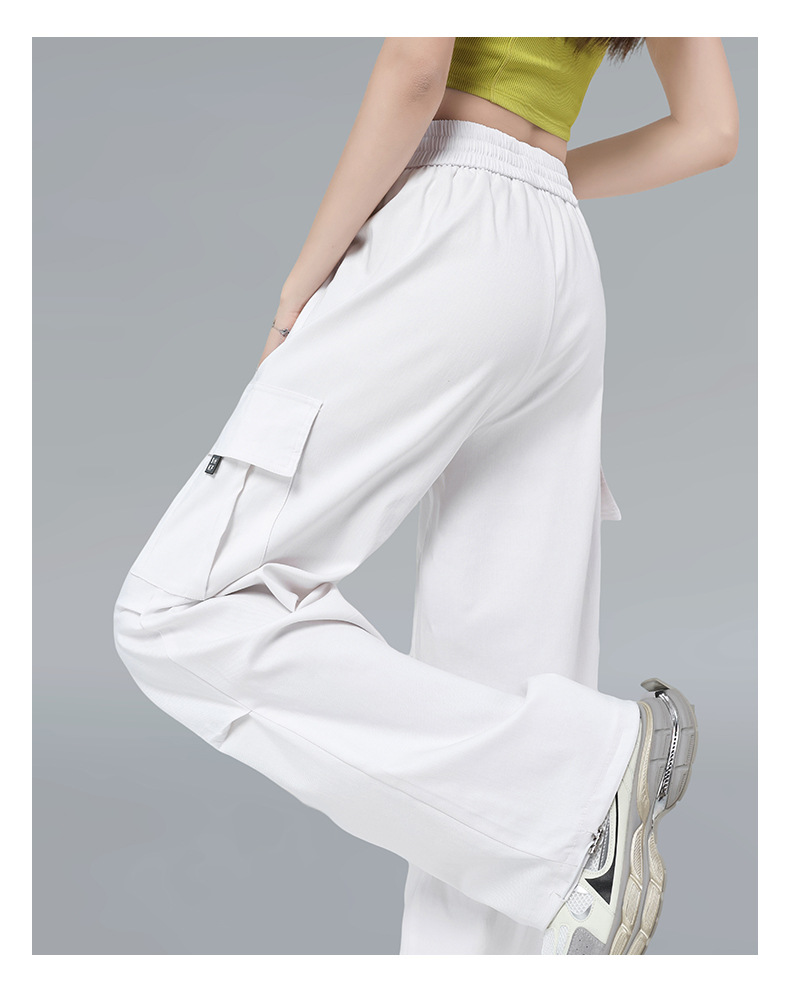 로즈 레드 작업복 여성 여름 얇은 2025 새로운 공수 아메리칸 스타일 속건성 아이스 실크 등산 와이드 레그 스포츠 바지
