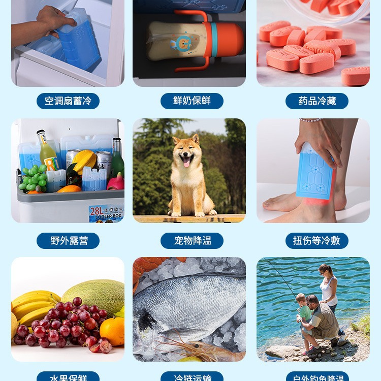 아이스보드는 아이스크리스탈박스, 냉방팬, 아이스브릭, 아이스백, 블루아이스, 상업용 냉각 등을 반복적으로 사용합니다.스토어 가기