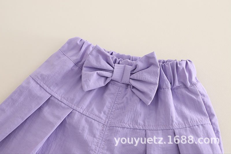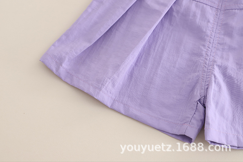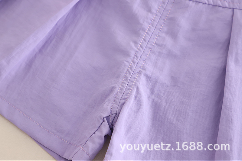 • ZQ-여아 모자 반팔 슈트 보라색