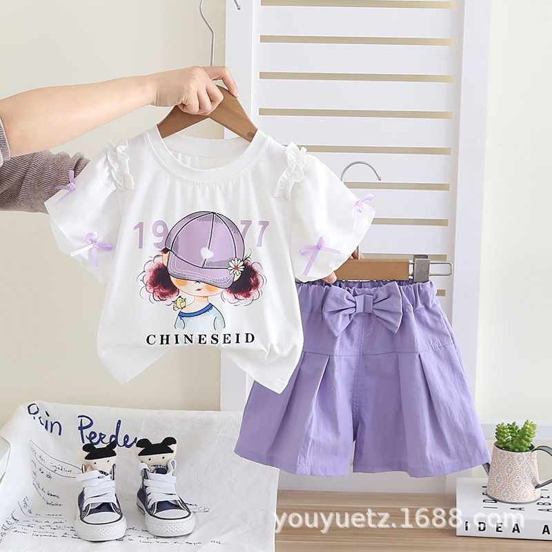 어린이 여름 정장 2025 새로운 여자 만화 캐주얼 얇은 반팔 투피스 세트 아기 여름 옷 유행스토어 가기