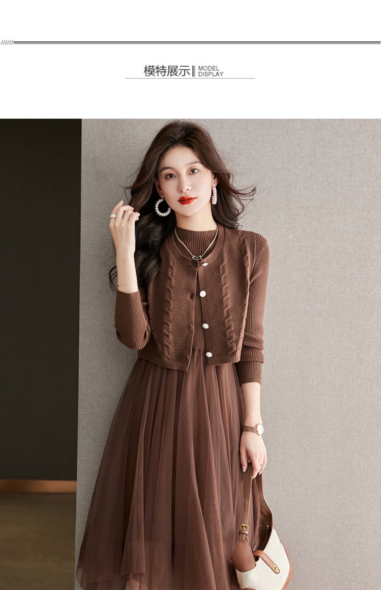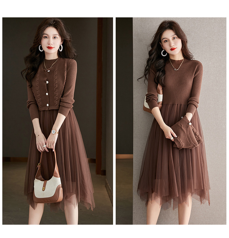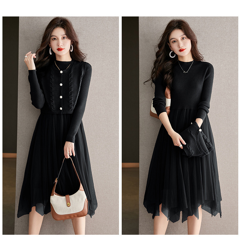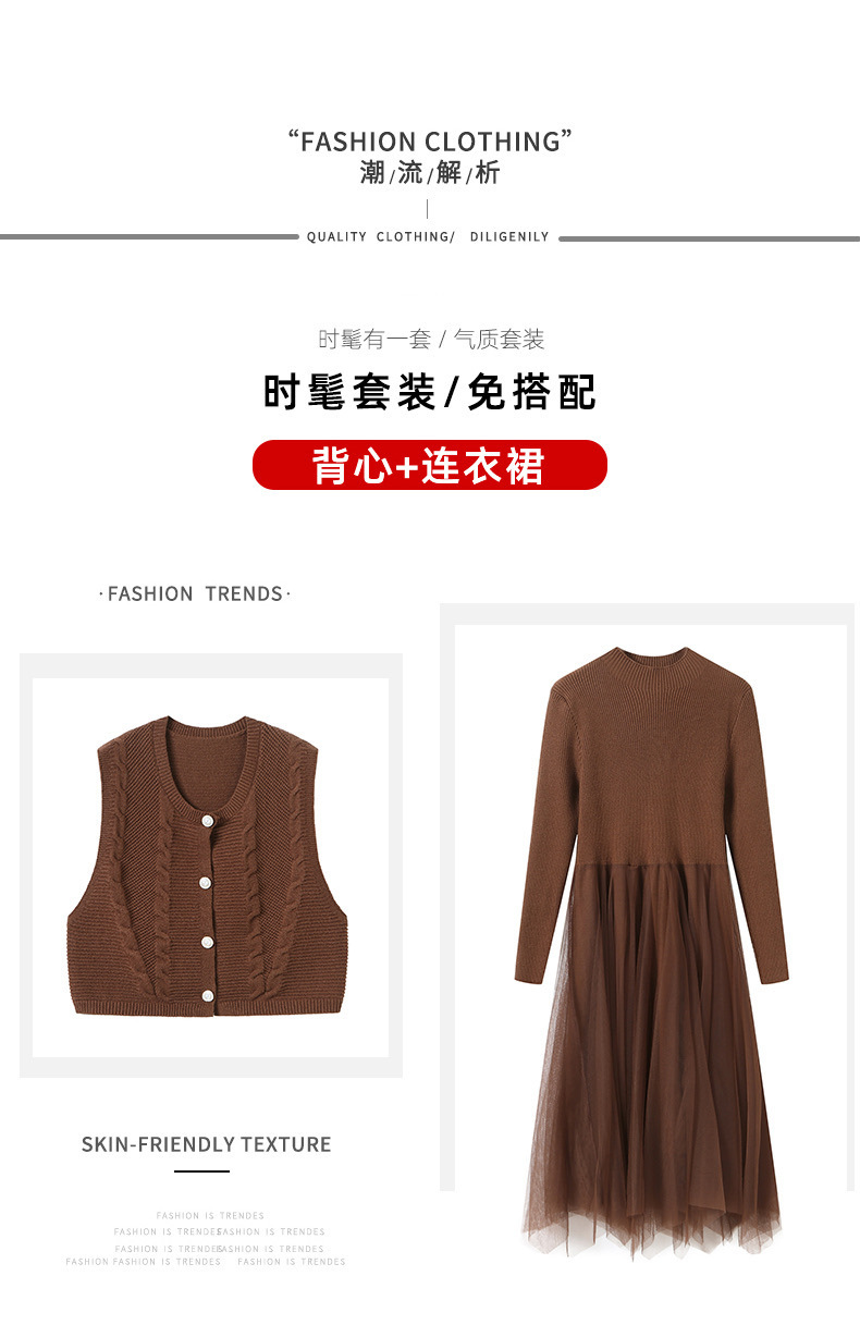 베이직 원피스 투피스 세트 2024 신상 의상 스웨터 이너 니트 조끼 세트 여성 우아함스토어 가기